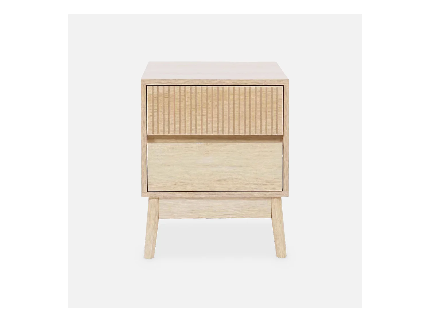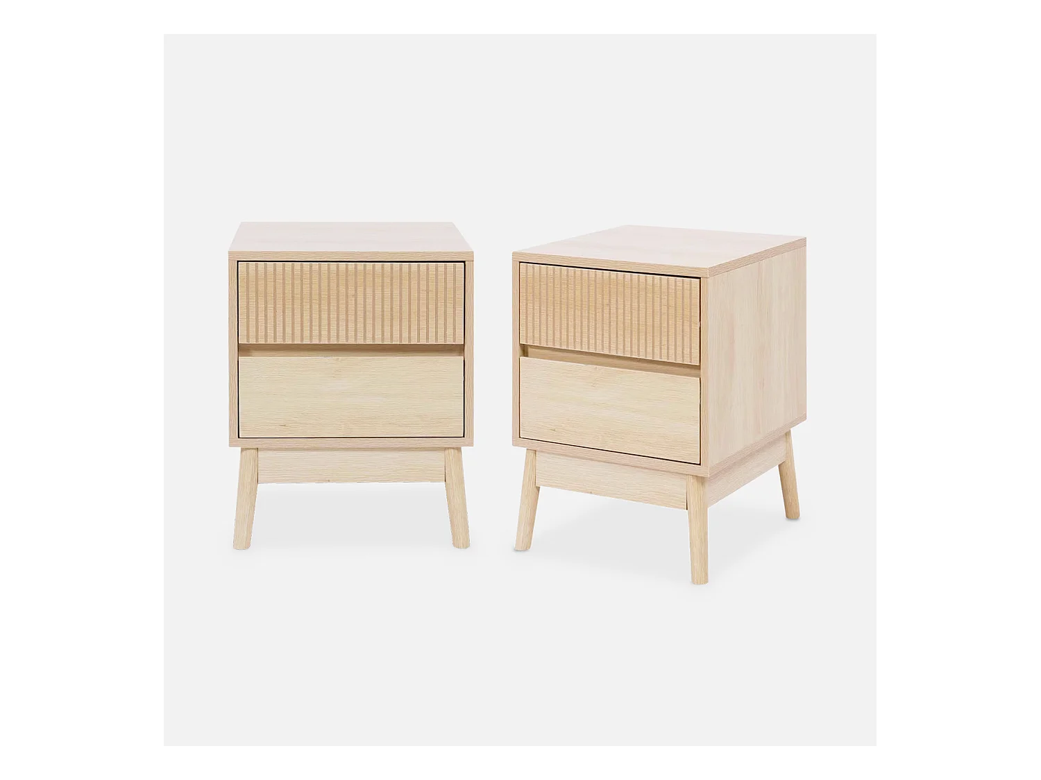 Set 2 comodini scandinavi con decoro in legno scanalato, noce