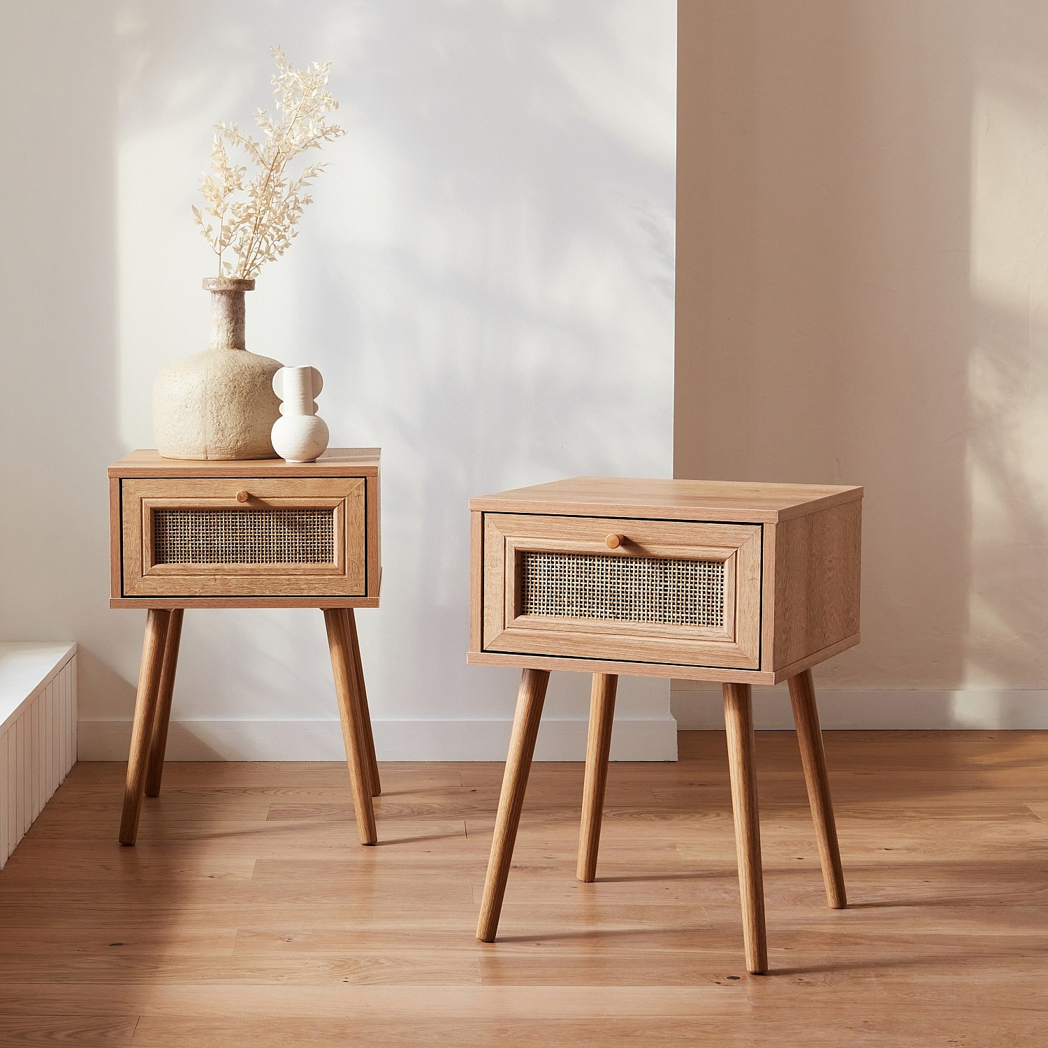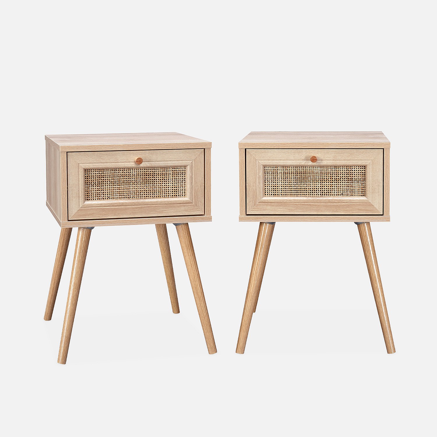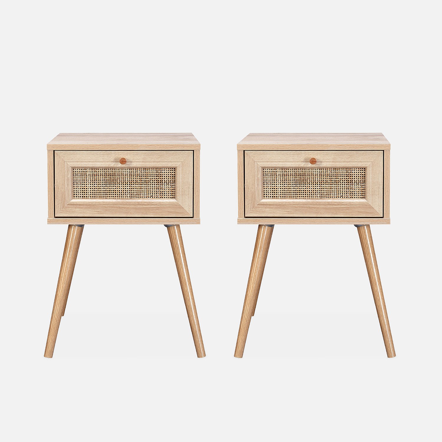 Set 2 comodini effetto legno e cannage, marrone naturale