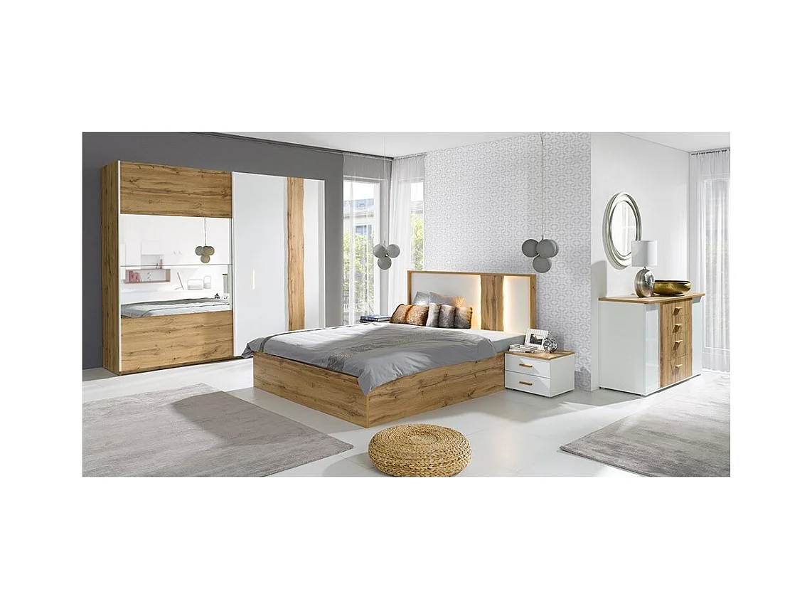 Set di 2 comodini WOOD con 2 cassetti colore rovere e bianco alpino