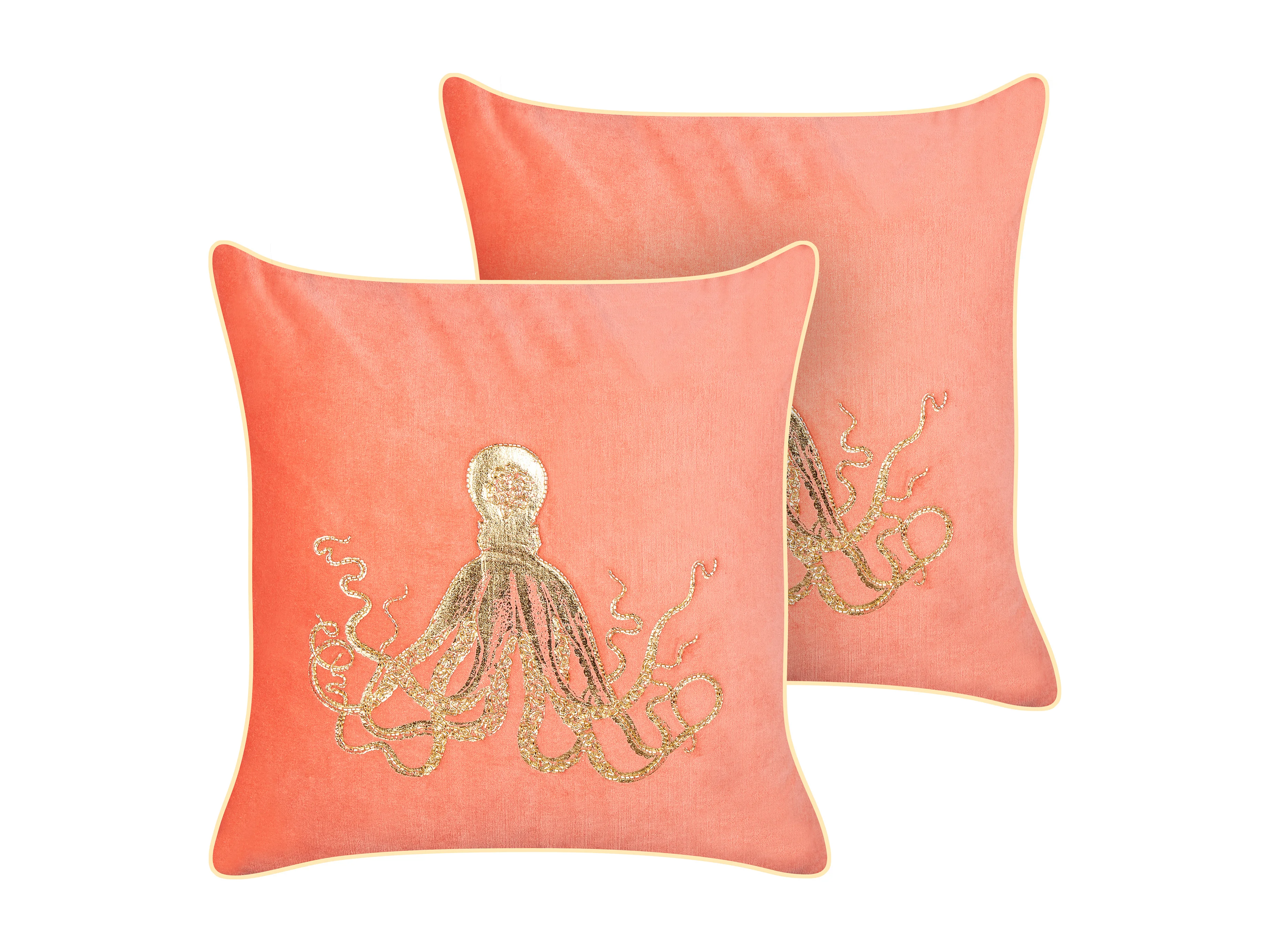 Set di 2 cuscini LAMINARIA Velluto 45 x 45 cm Corallo Trama animale