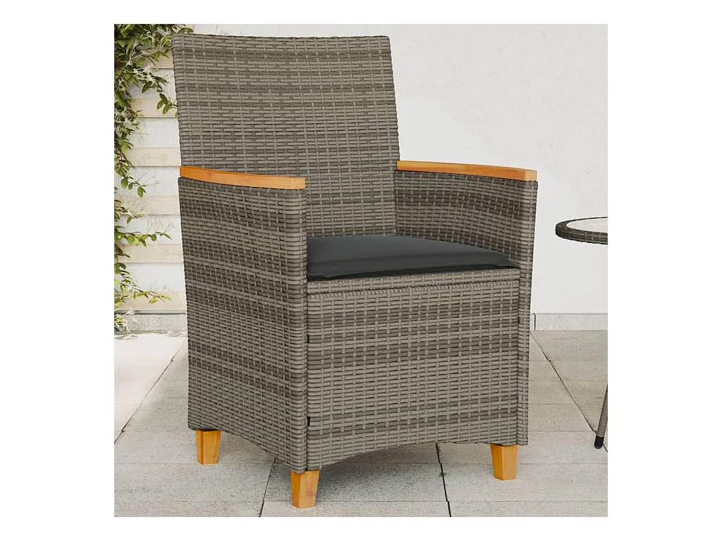 Set di 2 cuscini per sedie da giardino in resina intrecciata grigia e legno