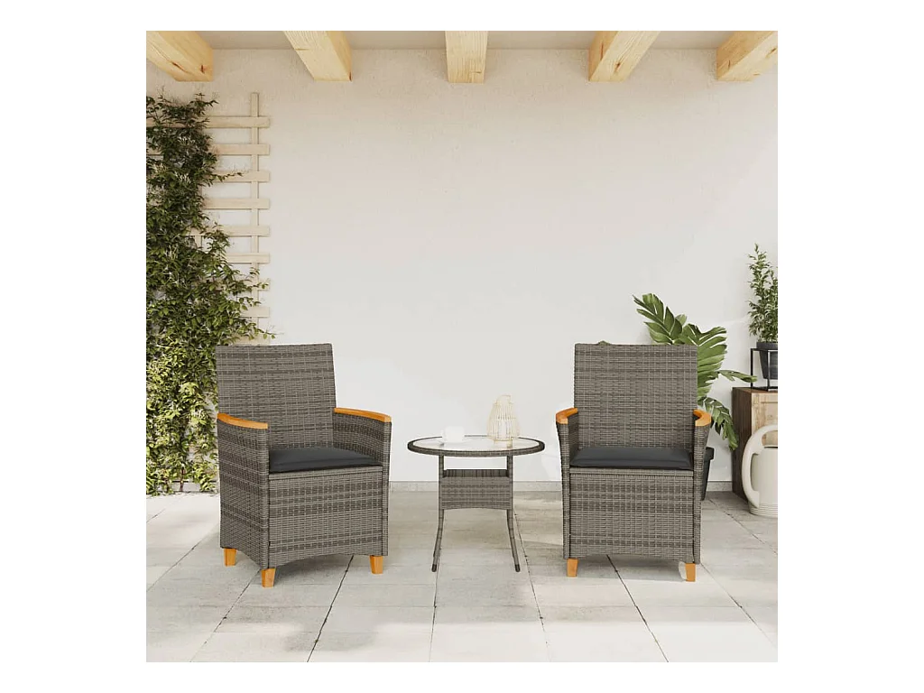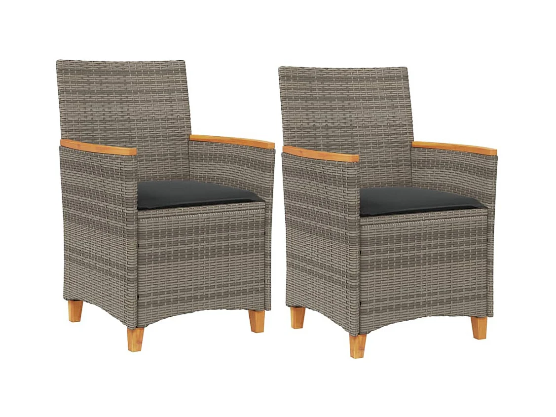 Sedie da giardino con cuscini, set da 2, grigie, in resina intrecciata