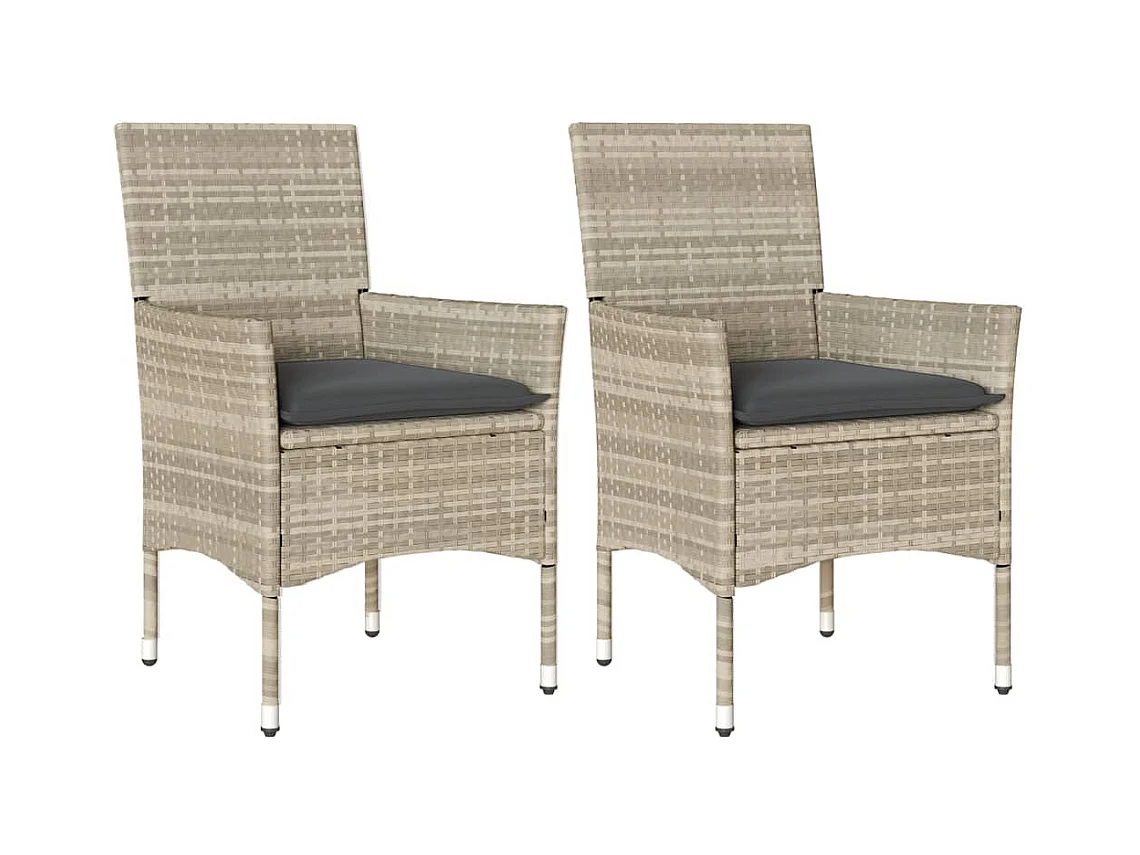 Sedie da giardino con cuscini 2 pezzi grigio chiaro rattan poly