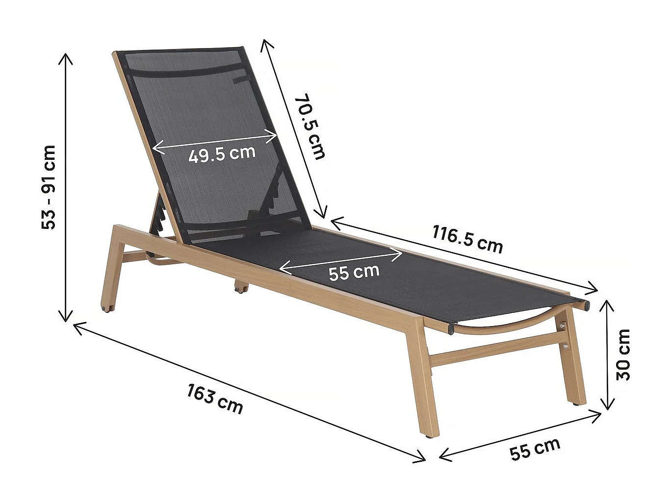 Set di 2 lettini "Elysia" in alluminio effetto legno - Nero