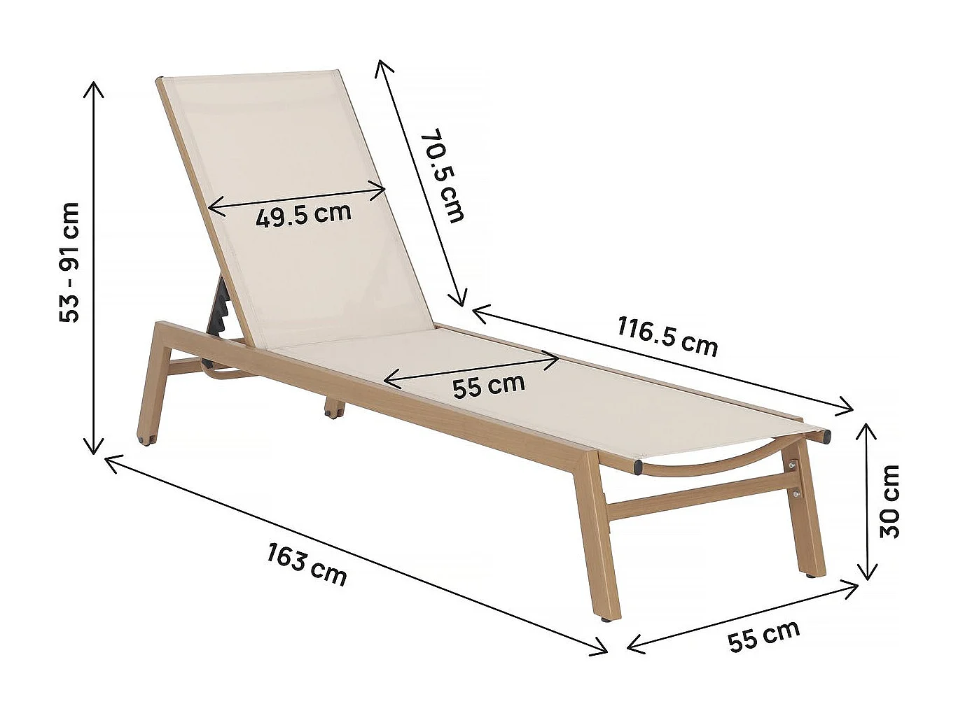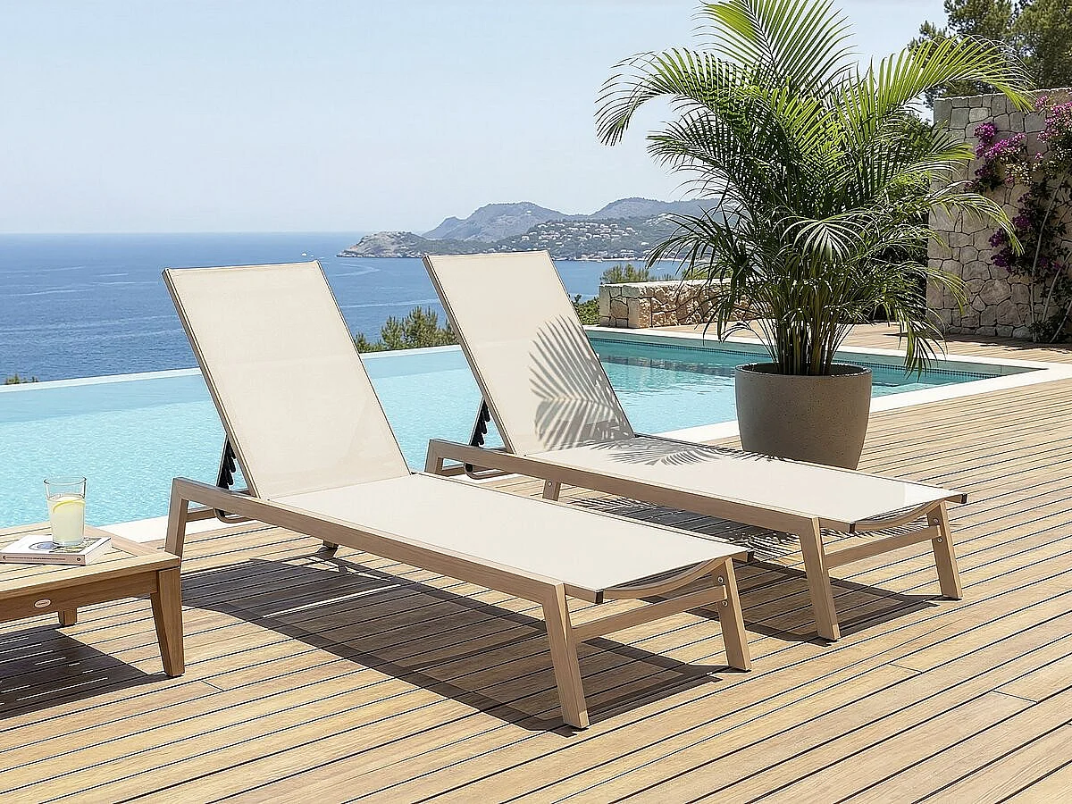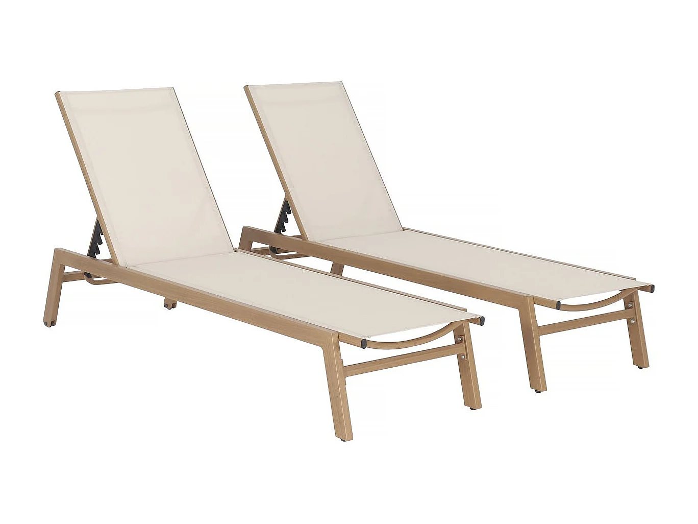 Set di 2 lettini "Elysia" in alluminio finto legno - Ecrù