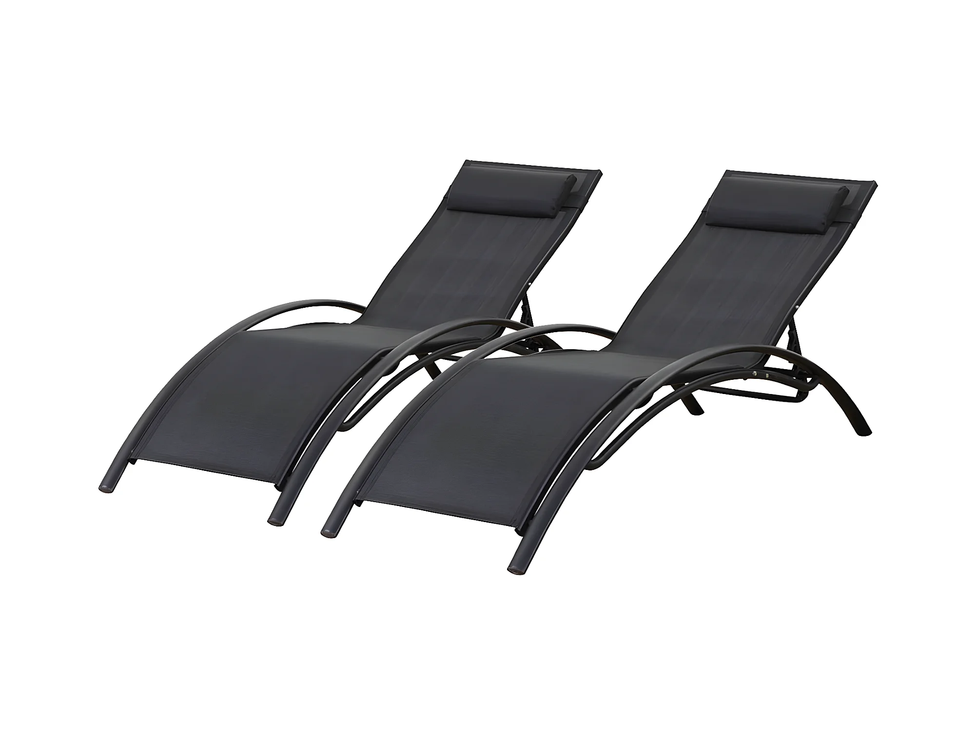Set di 2 lettini prendisole Beauty "Phoenix" in alluminio Nero