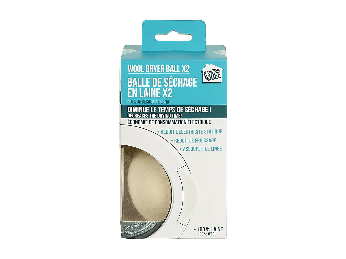 Set di 2 Palline Asciugatrici in Lana Bianca - Riduce il Tempo di Asciugatura e l'Elettricità Statica