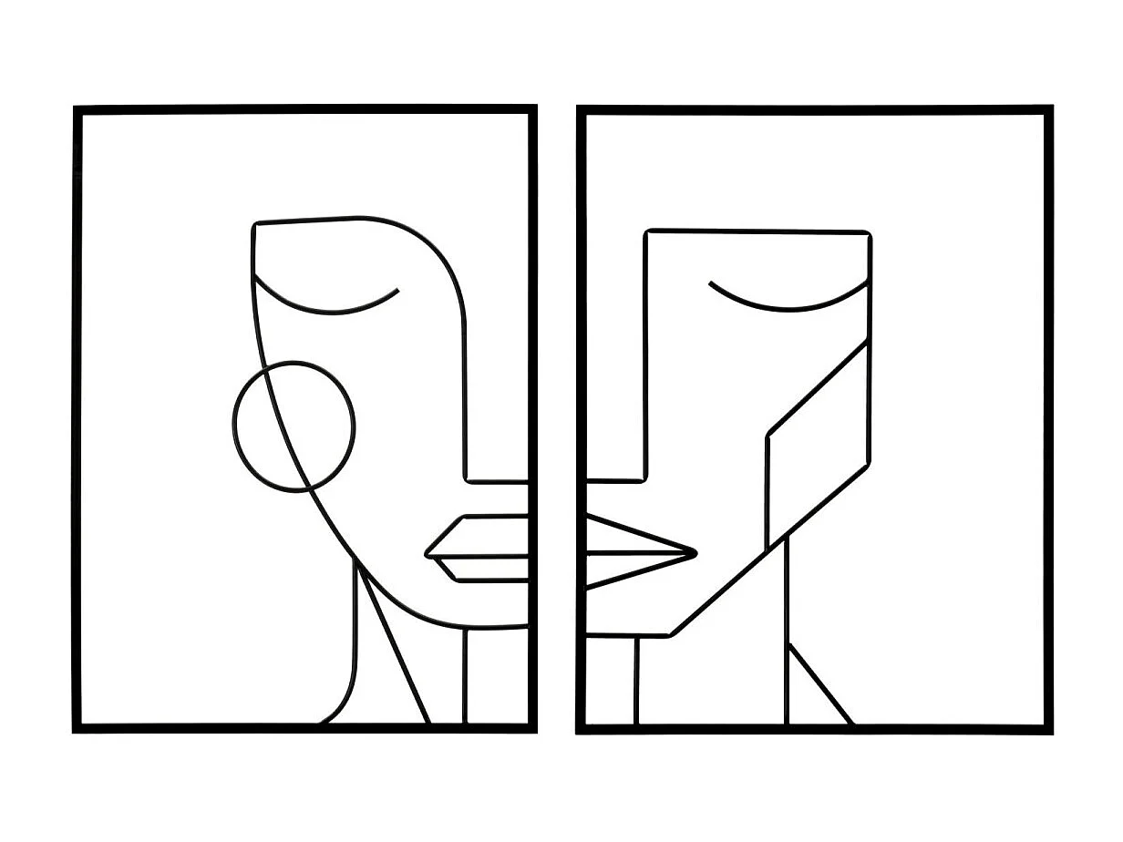 Set di 2 pannelli decorativi 3D volti in metallo neri cm 60x1x80