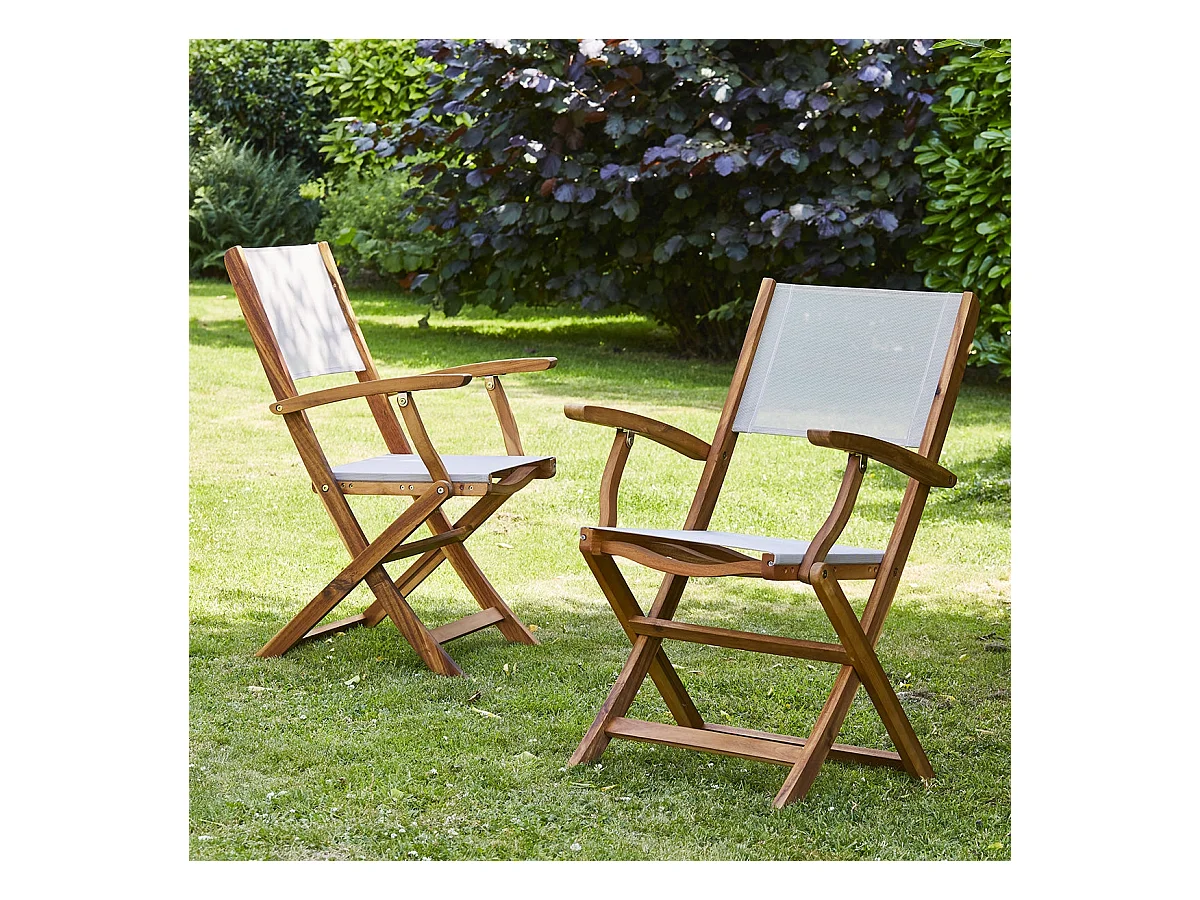 Set di 2 sedie da giardino in legno di acacia grigio e polipropilene