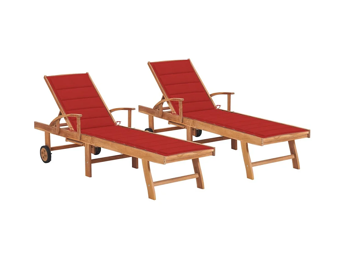 Set di 2 poltrone lounge con cuscino rosso. Legno massello di teak