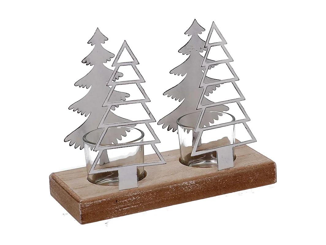 Set di 2 Portacandele metallo 2 posti alberi bianco cm 18x8h15