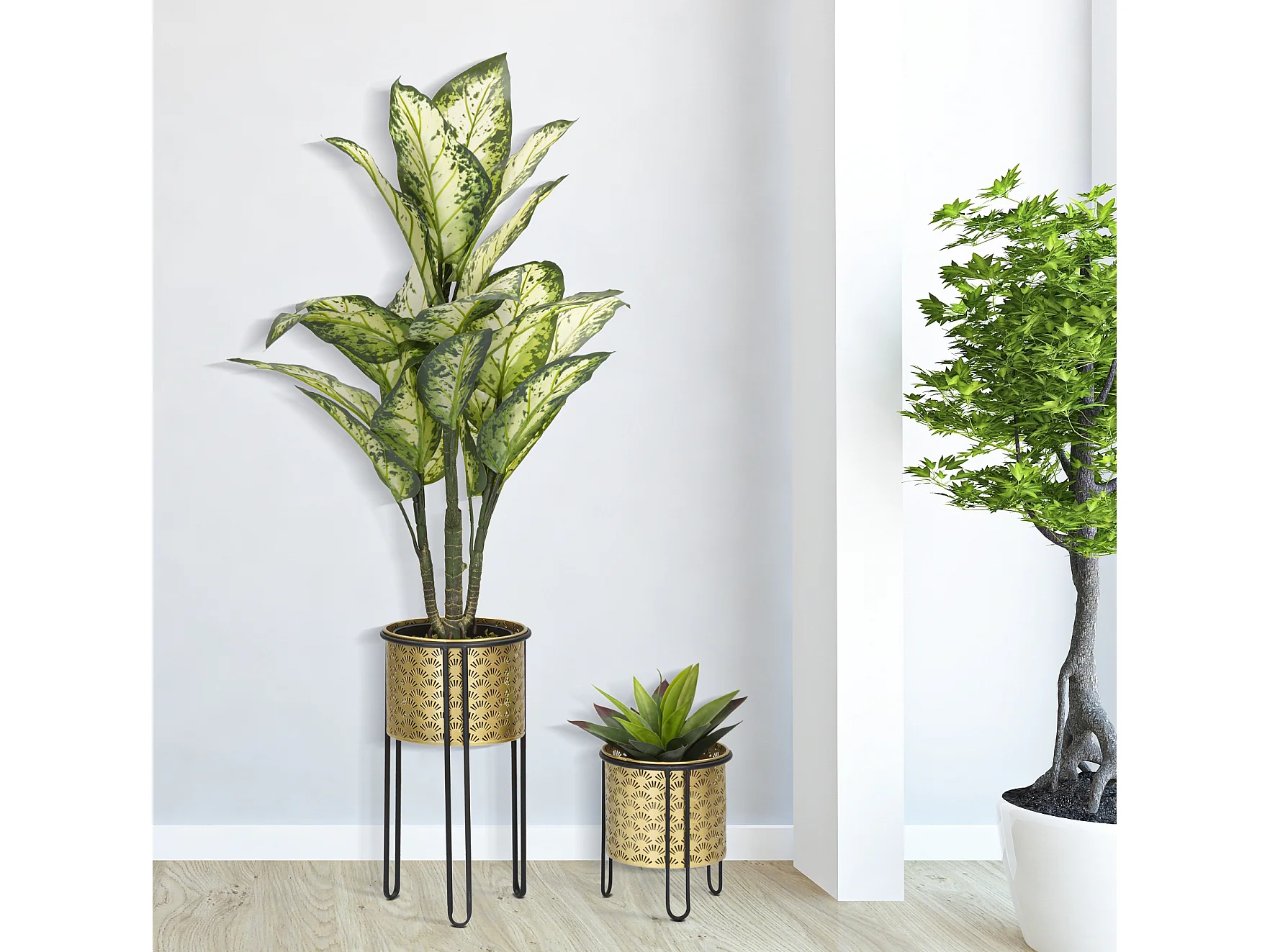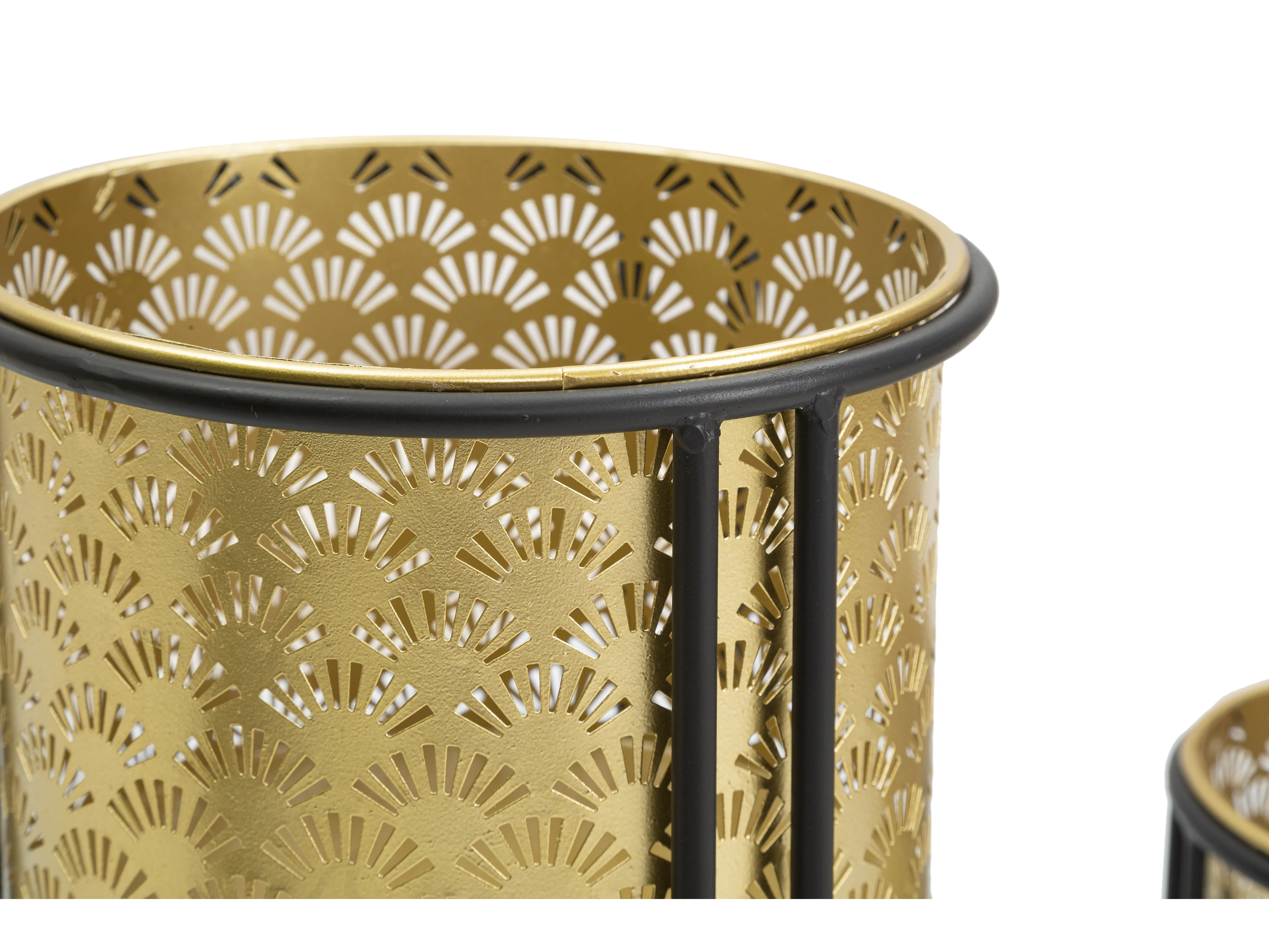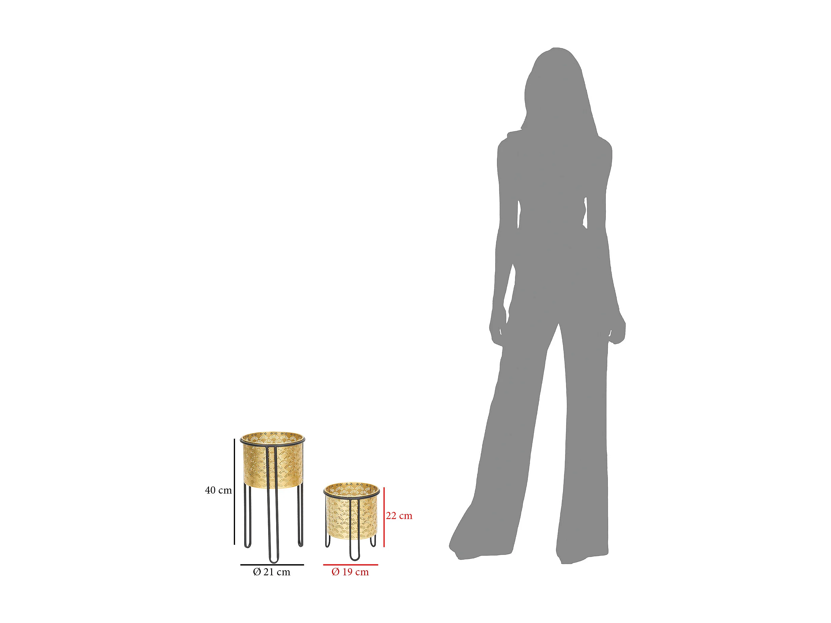 Set di 2 portavasi in metallo dorati e neri Ø cm 21x40-19x22