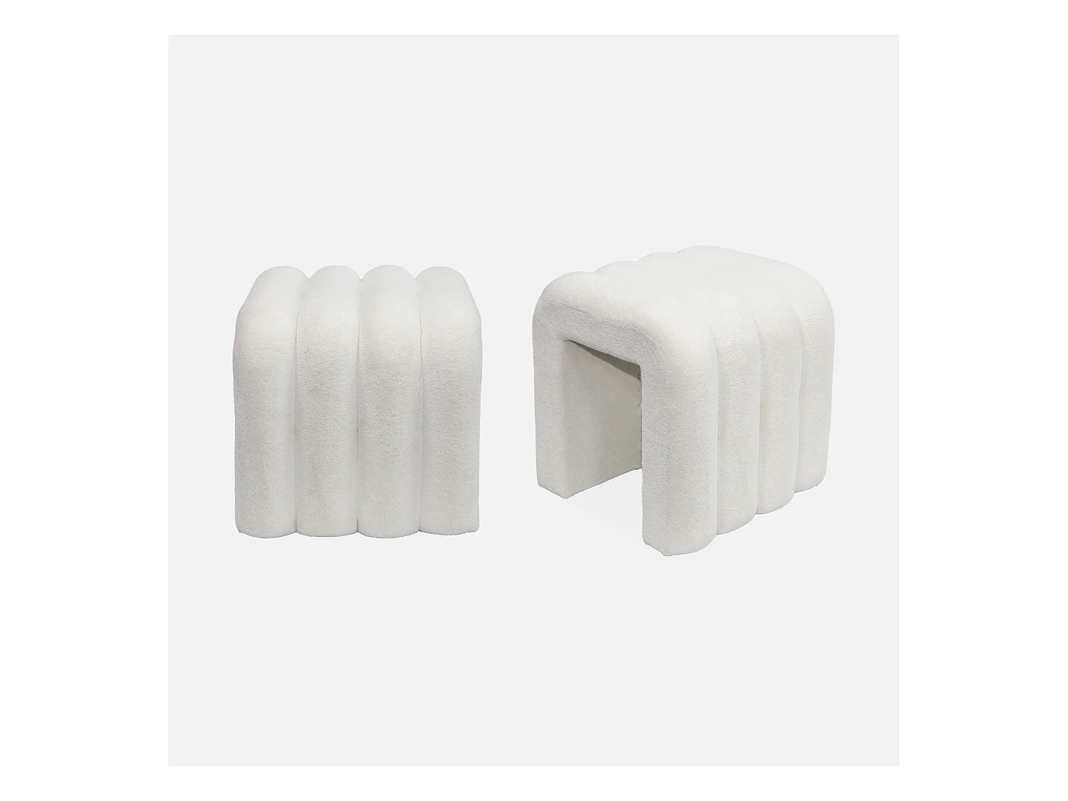 Sgabello basso contenitore portaoggetti in Tessuto bouclette e Metallo Nero Panna - EZEL