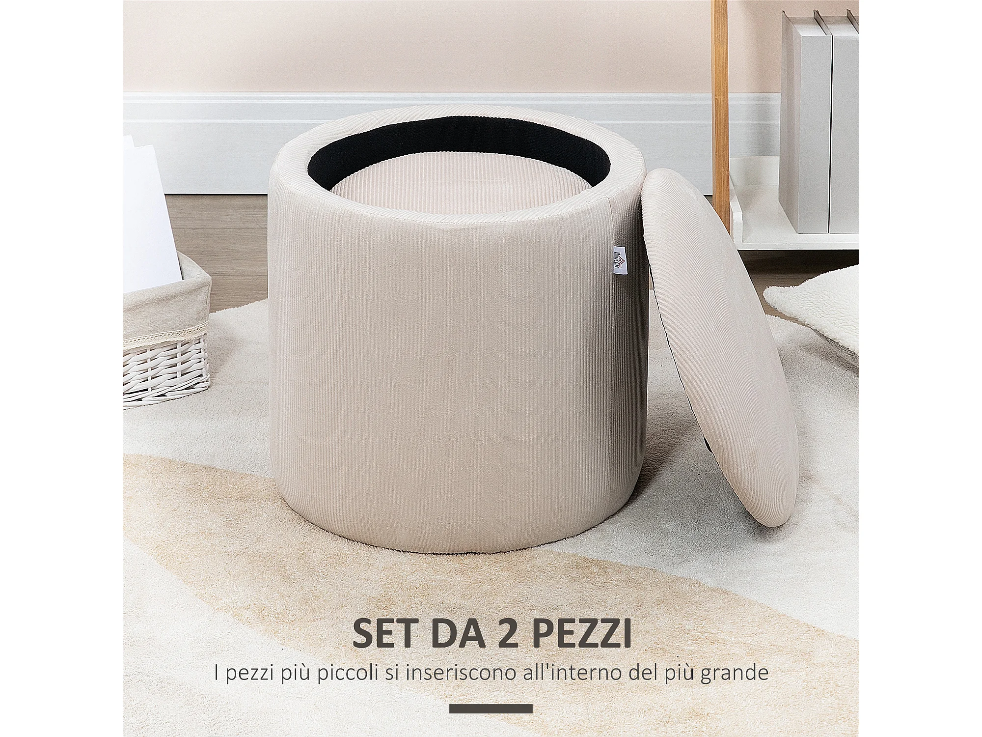 Set di 2 pouf contenitore salvaspazio in velluto bianco
