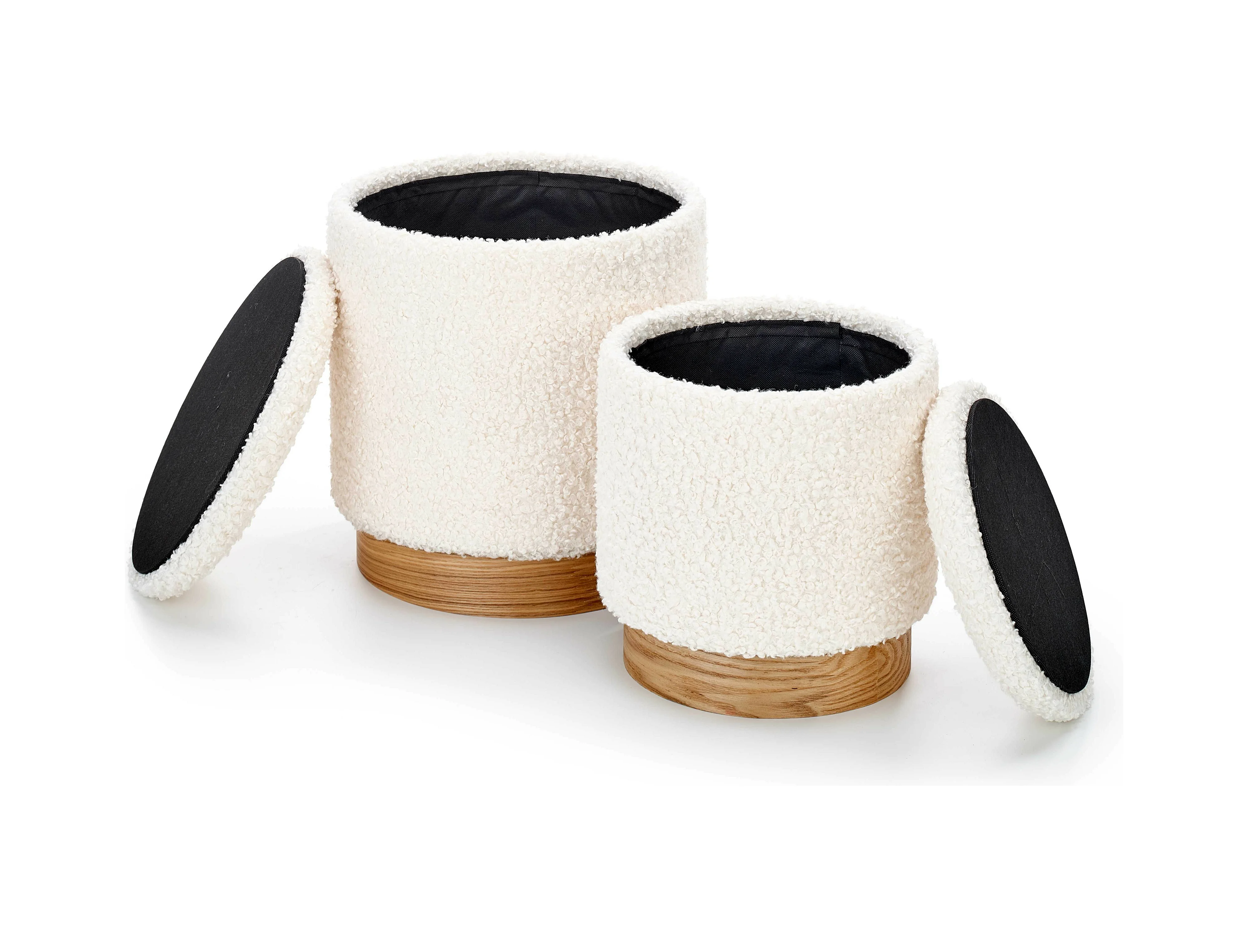 Set di 2 pouf in tessuto bouclé beige con contenitore OREL
