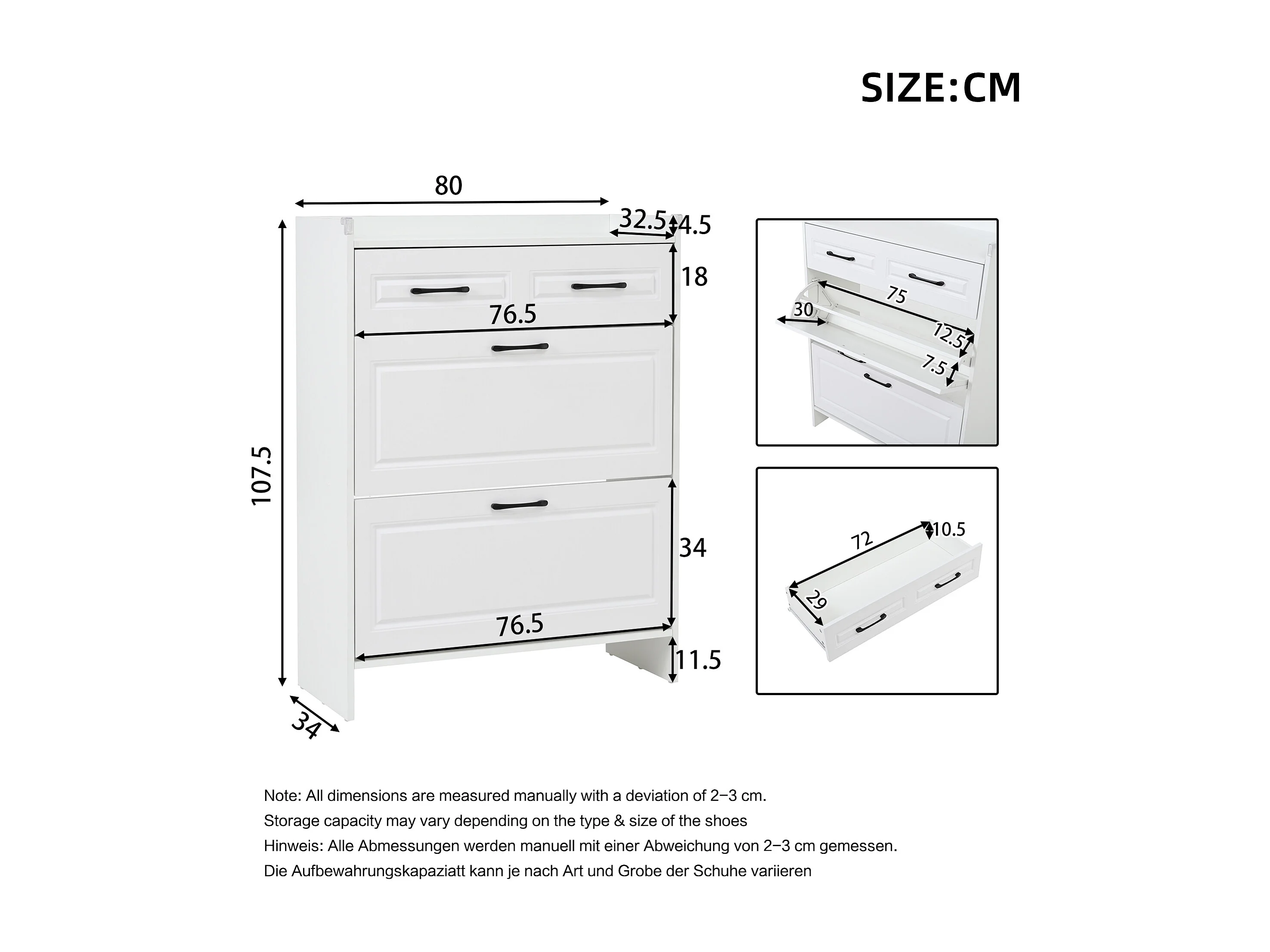 Scarpiera moderna con 2 cassetti e 2 ante 80×35×105 cm Ampio spazio di archiviazione con luci LED Bianco