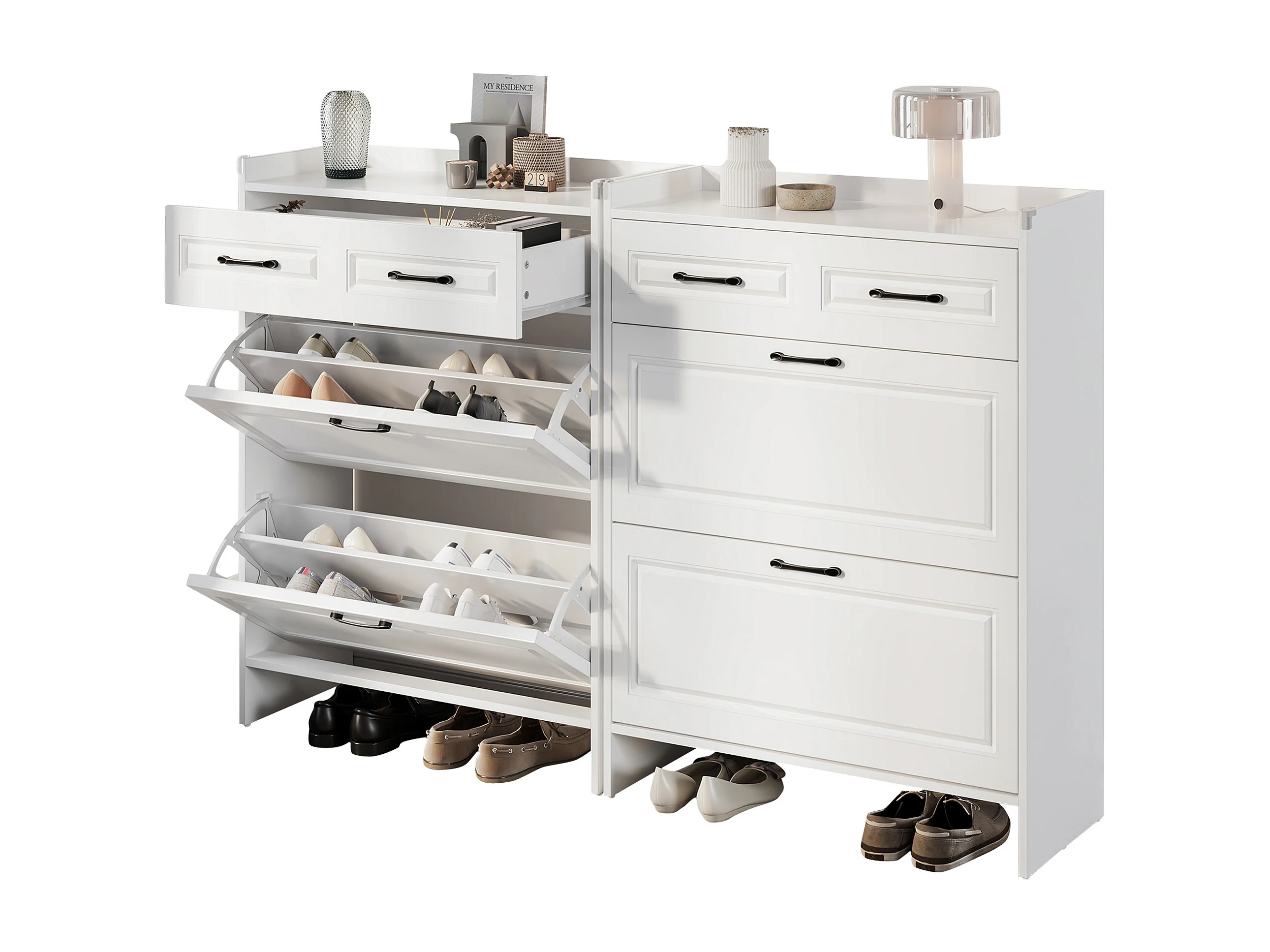 Set di 2 scarpiere - 2 ante a ribalta e cassetto - MDF bianco