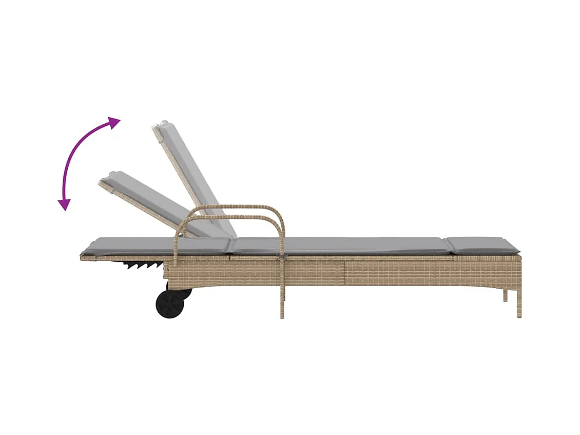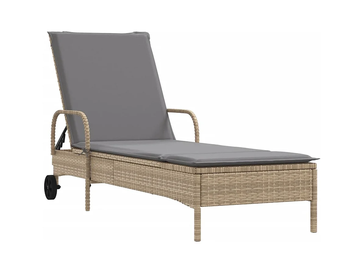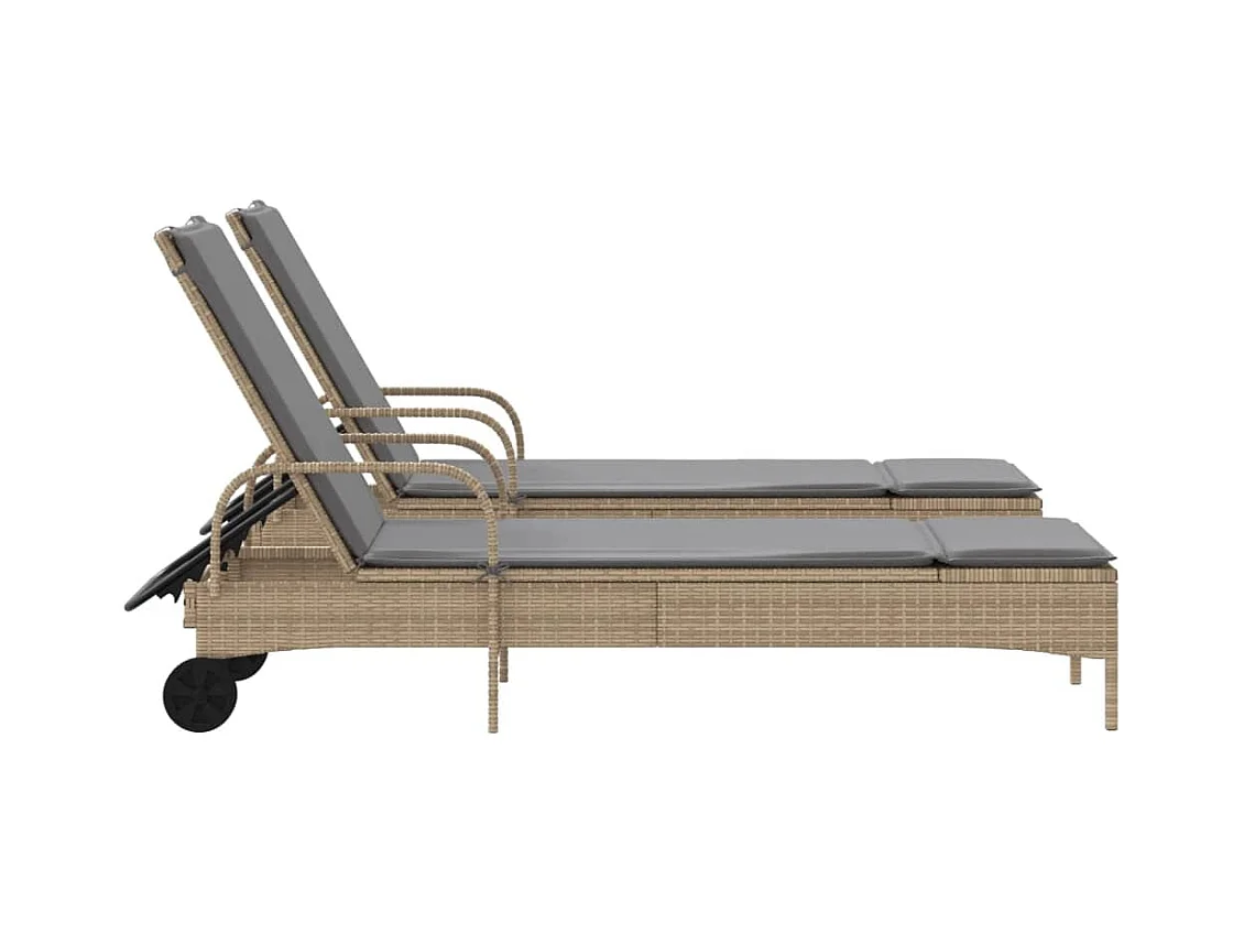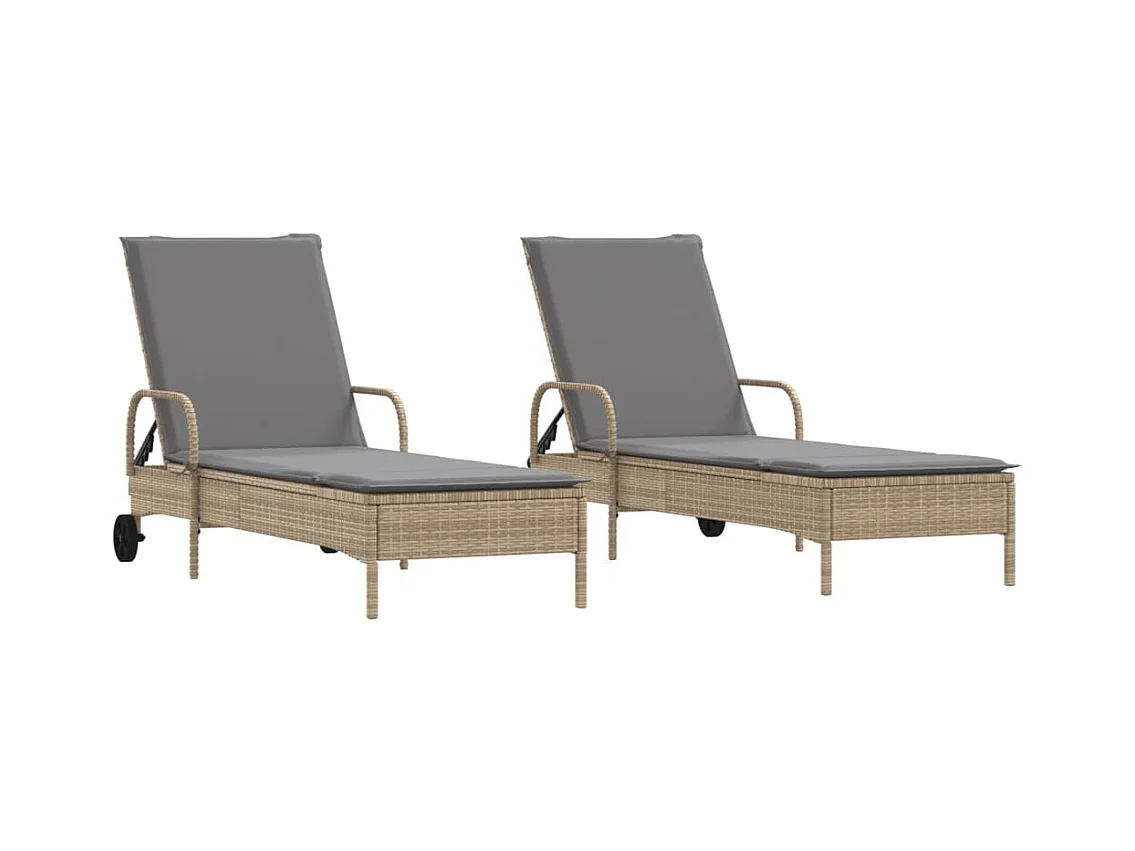 Set di 2 sedie a sdraio con cuscini in resina intrecciata beige