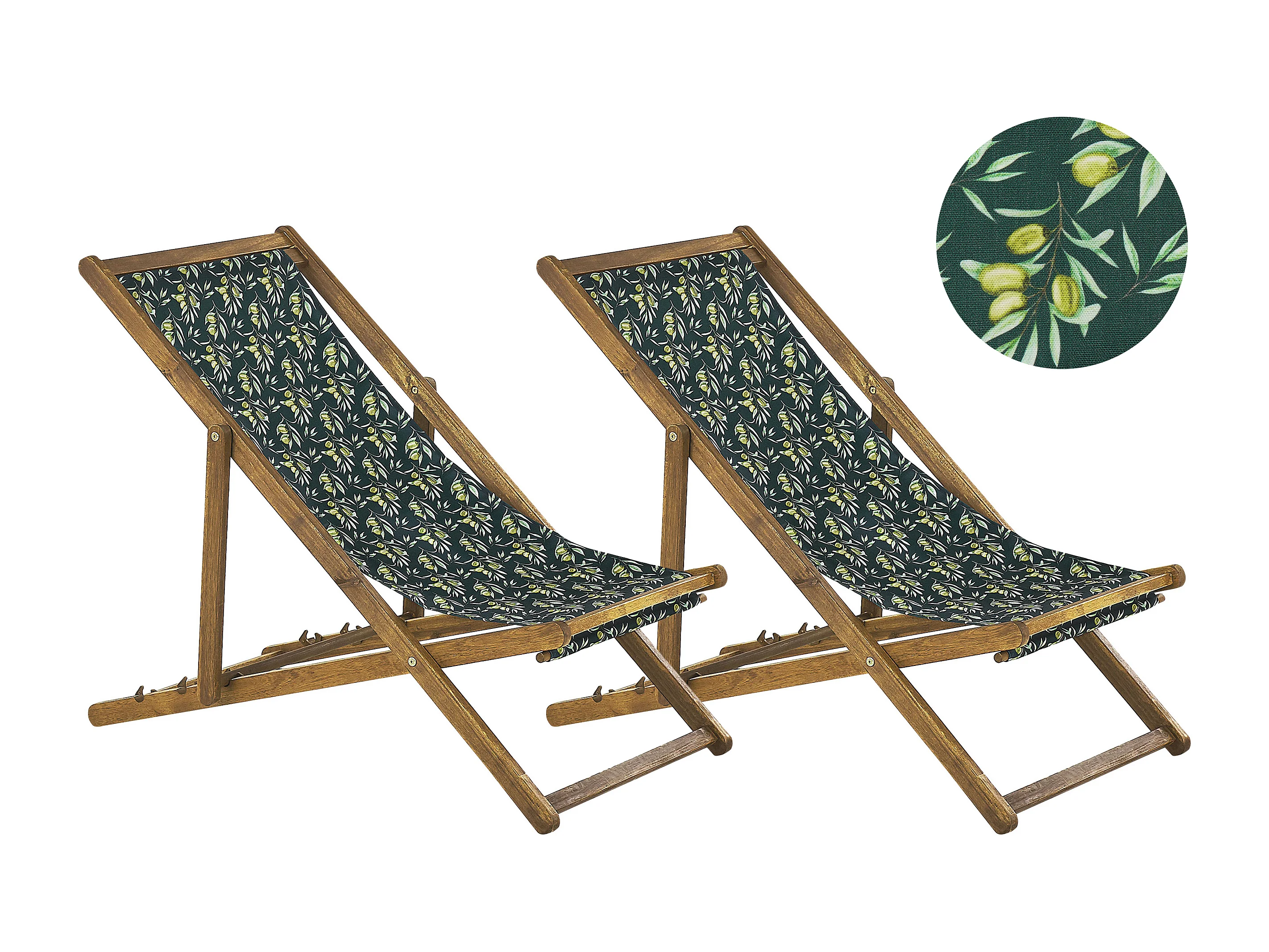 Set di 2 sedie a sdraio pieghevoli ANZIO con Tessuti di Ricambio Motivo floreale Legno d'acacia Marrone chiaro