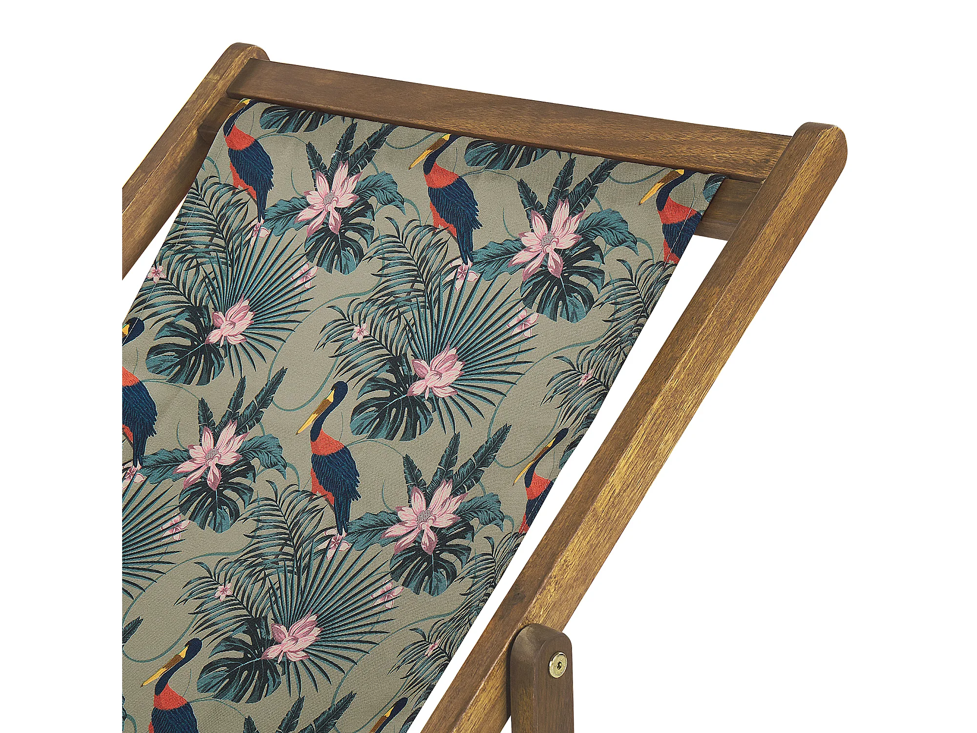 Set di 2 sedie a sdraio pieghevoli ANZIO con Tessuti di Ricambio Motivo animale Legno d'acacia Marrone chiaro