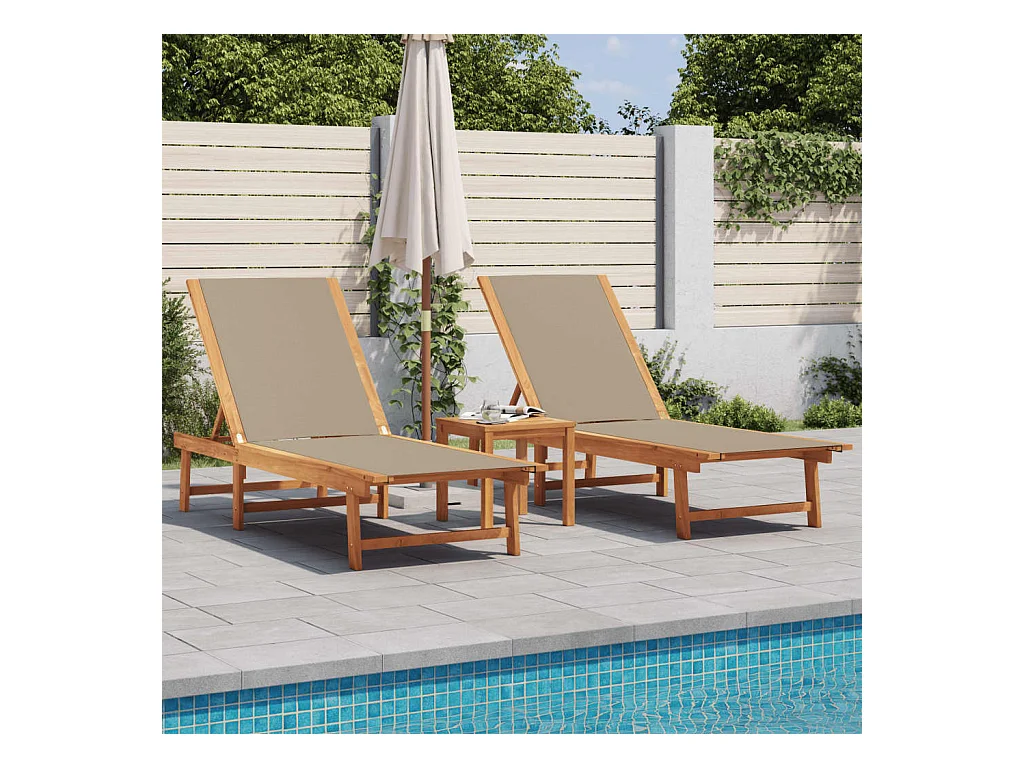 Lettini Prendisole 2 pz e Tavolo Tortora Legno Acacia/Textilene