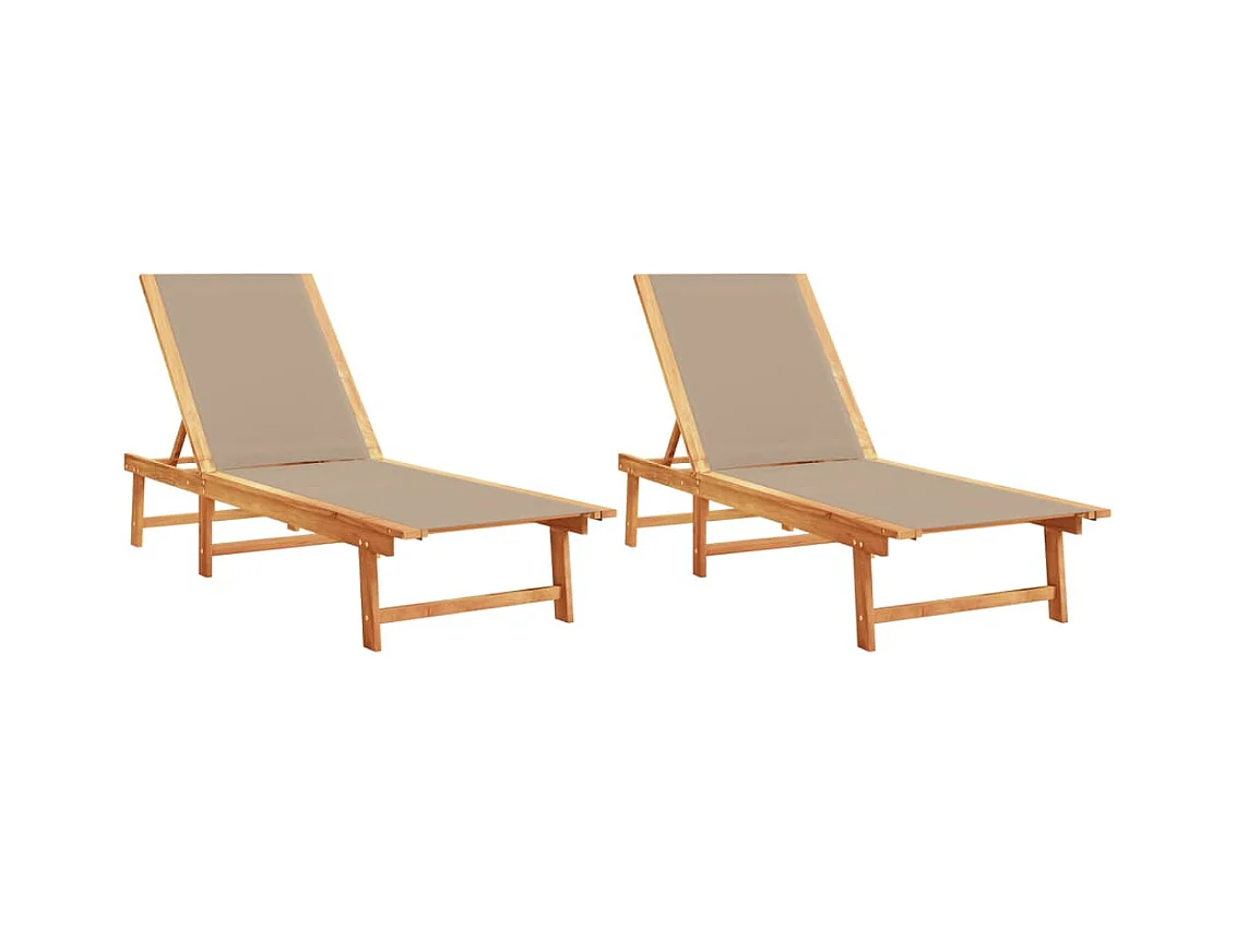 Set di 2 sedie a sdraio in legno massello di acacia tortora e tessili