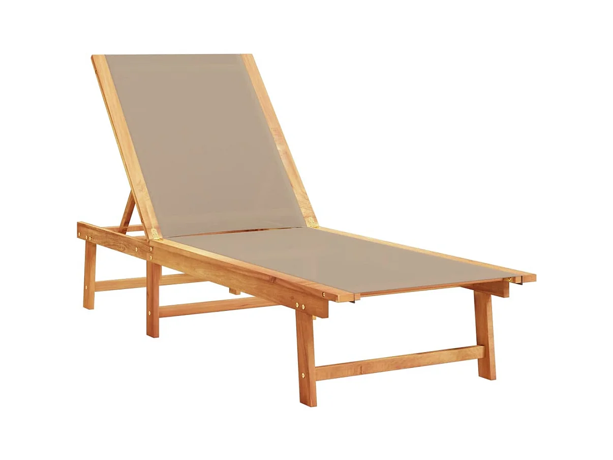 Set di 2 sedie a sdraio, tavolo in legno di acacia color talpa e Textilene