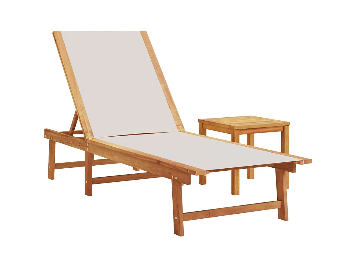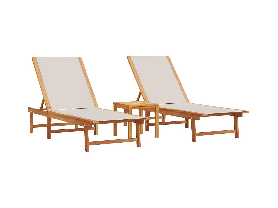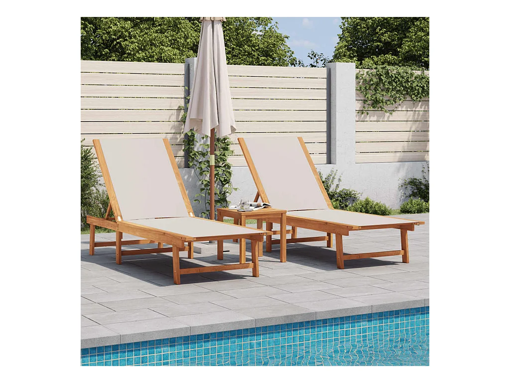 Lettini Prendisole 2 pz e Tavolo Grigio Legno Acacia/Textilene