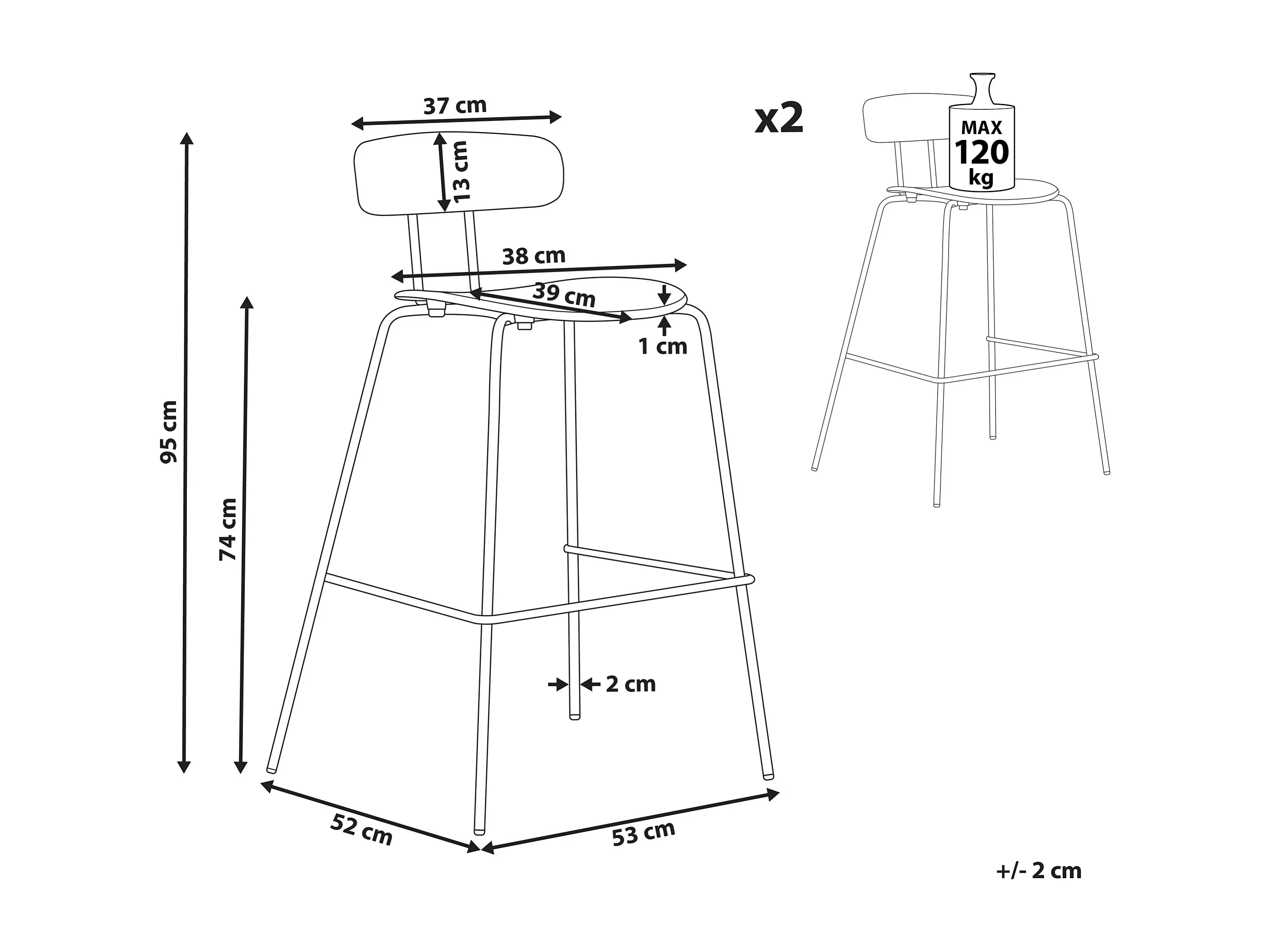Set di 2 sedie alte SIBLEY Nero