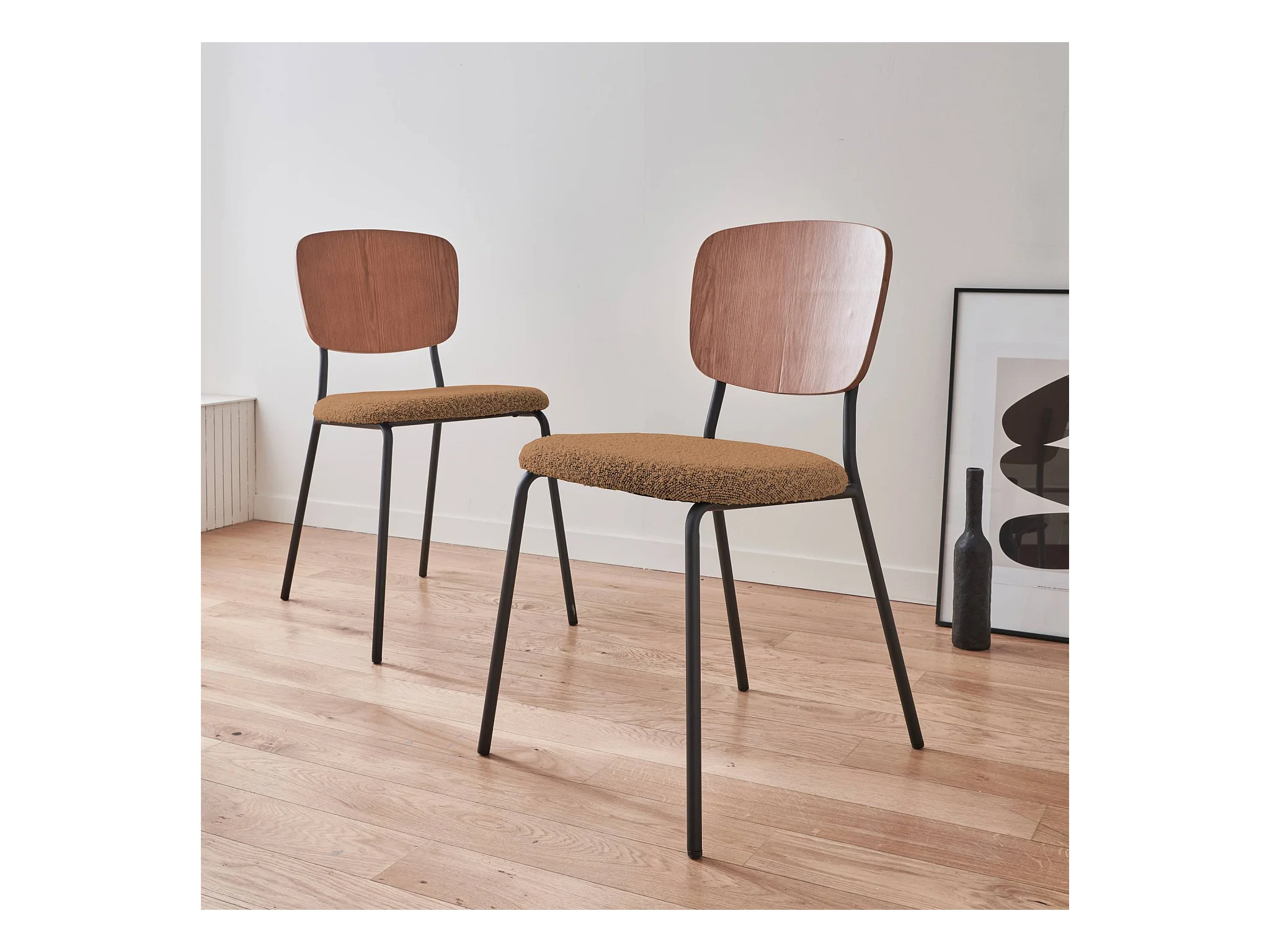 Set di 2 sedie bouclé struttura in legno con gambe in metallo,