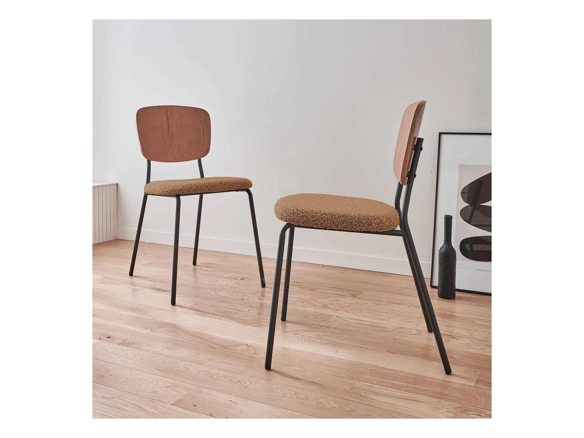CANCUN-Sedia scandinava tessuto curry gambe metallo nero (x2)