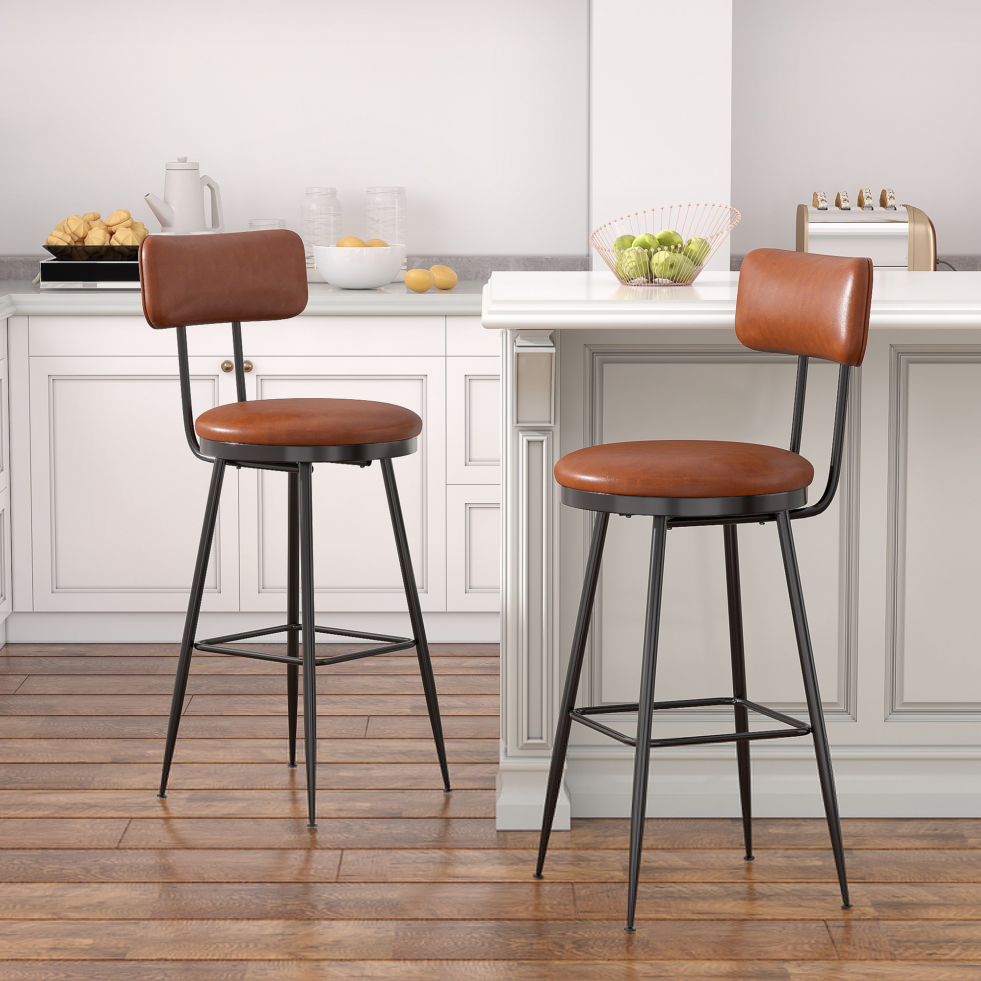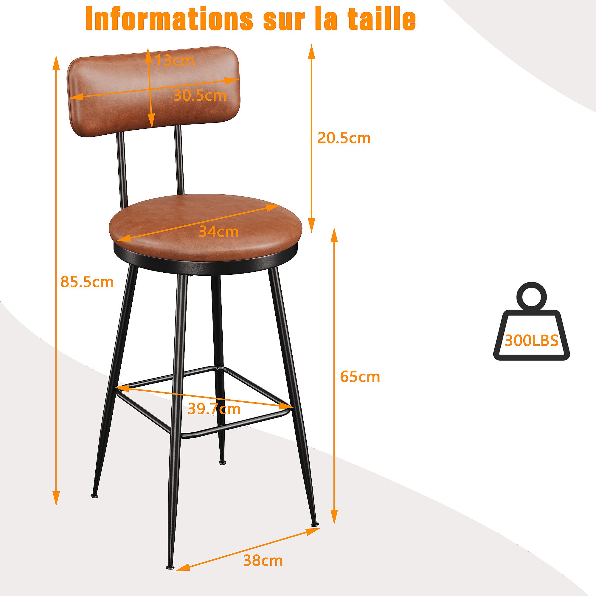 Set di 2 sedie da bar moderne – Schienale, similpelle marrone, struttura in metallo, altezza 65 cm