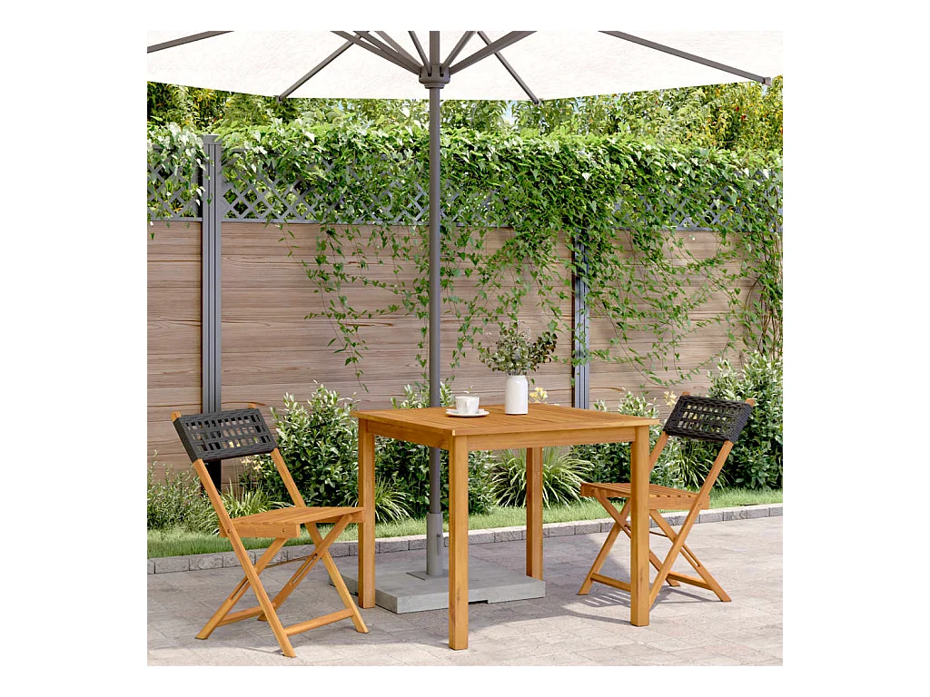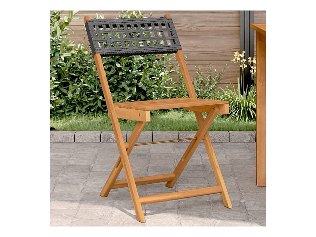 Set di 2 sedie da bistrot in legno massello di acacia e rattan nero