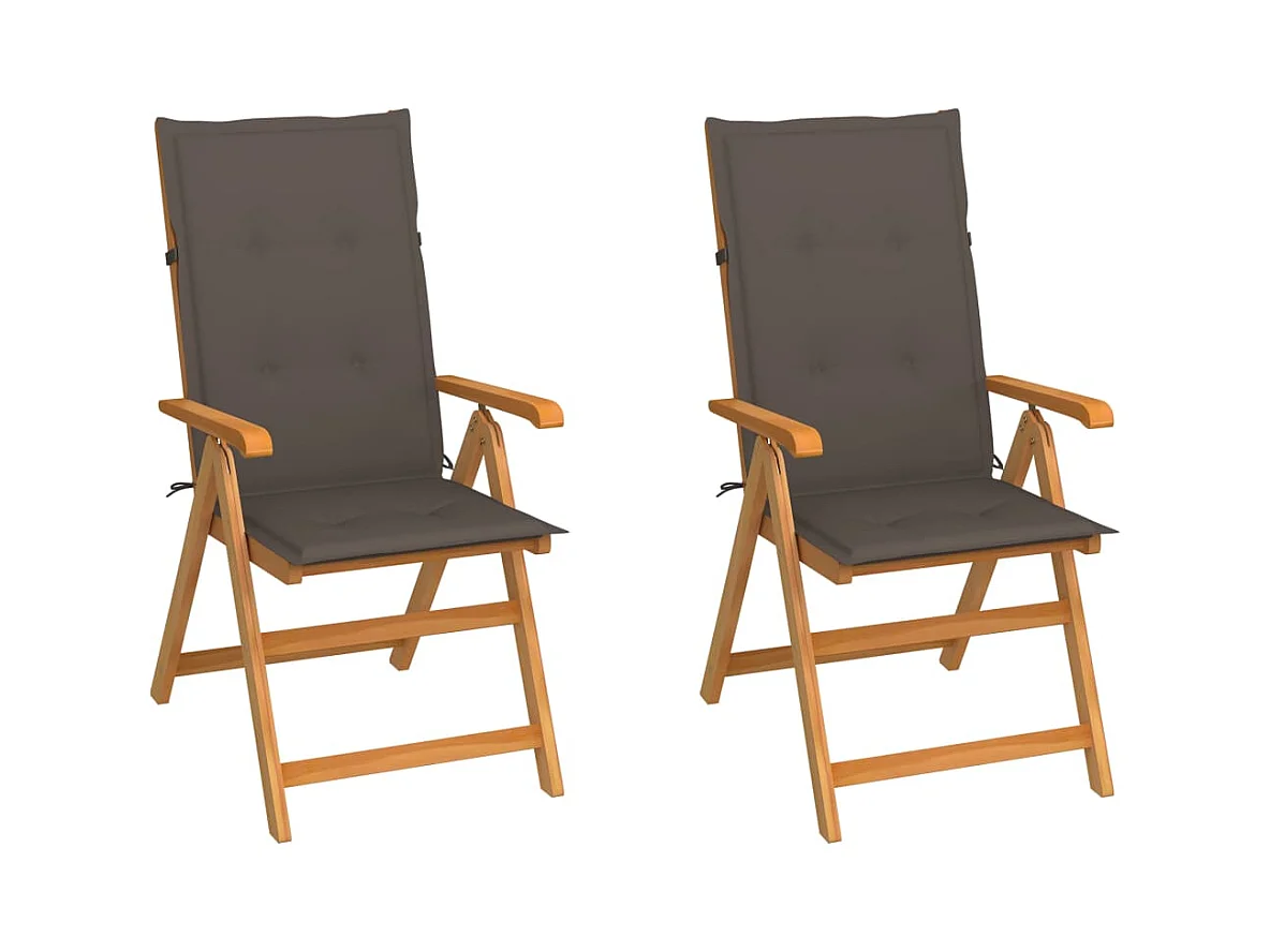 Set di 2 sedie reclinabili con cuscini in teak massello grigio