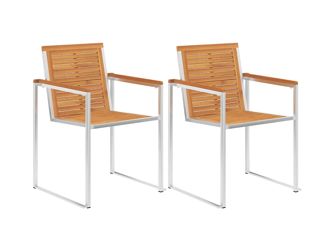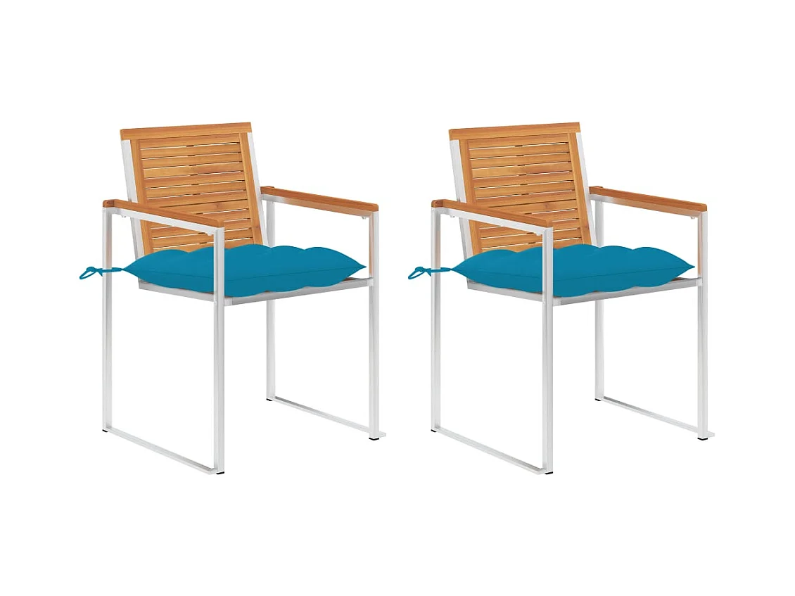 Set di 2 sedie da giardino con cuscini in teak massello e acciaio