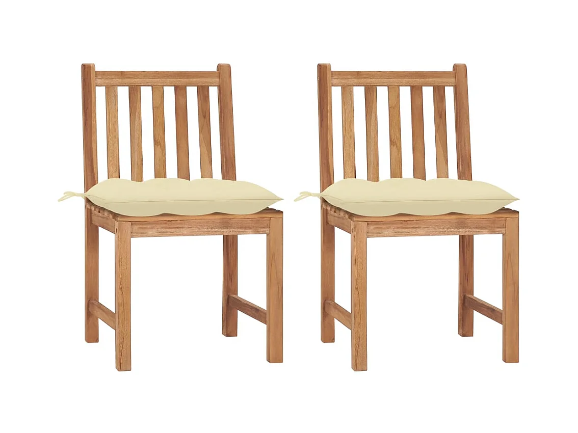 Set di 2 sedie da giardino e cuscini beige in legno massello di teak
