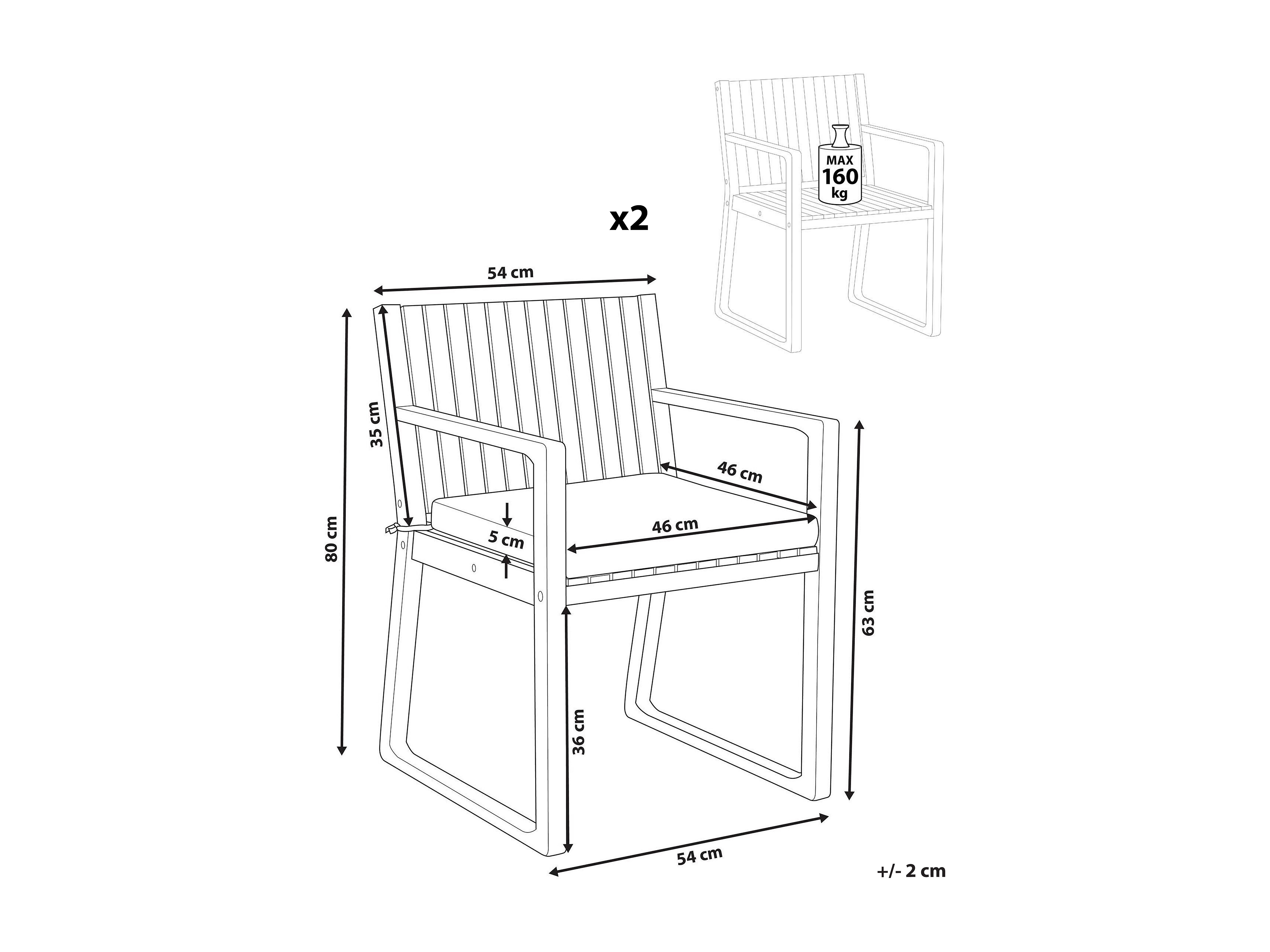 Set di 2 sedie da giardino con cuscini SASSARI PREMIUM Legno di acacia certificato Tortora