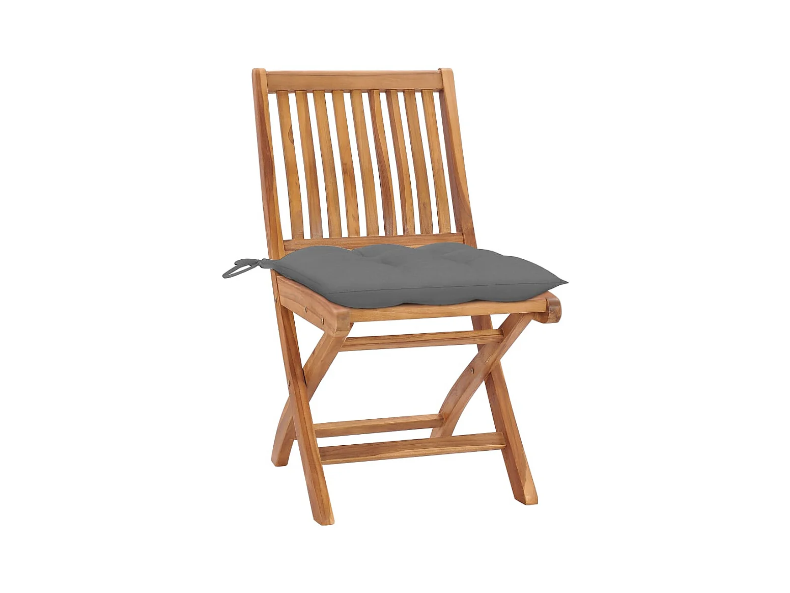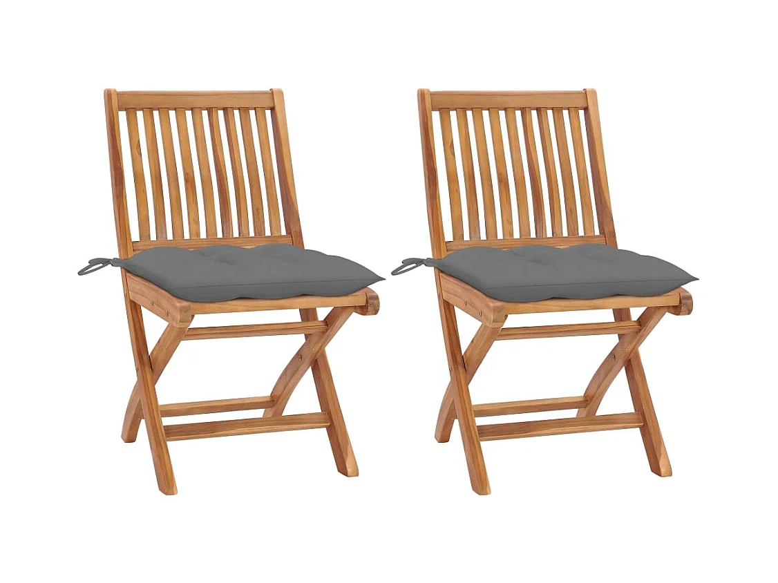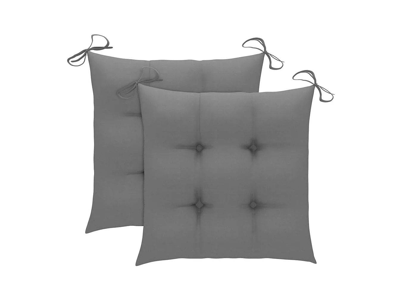 Set di 2 sedie da giardino e cuscini grigi in legno massello di teak