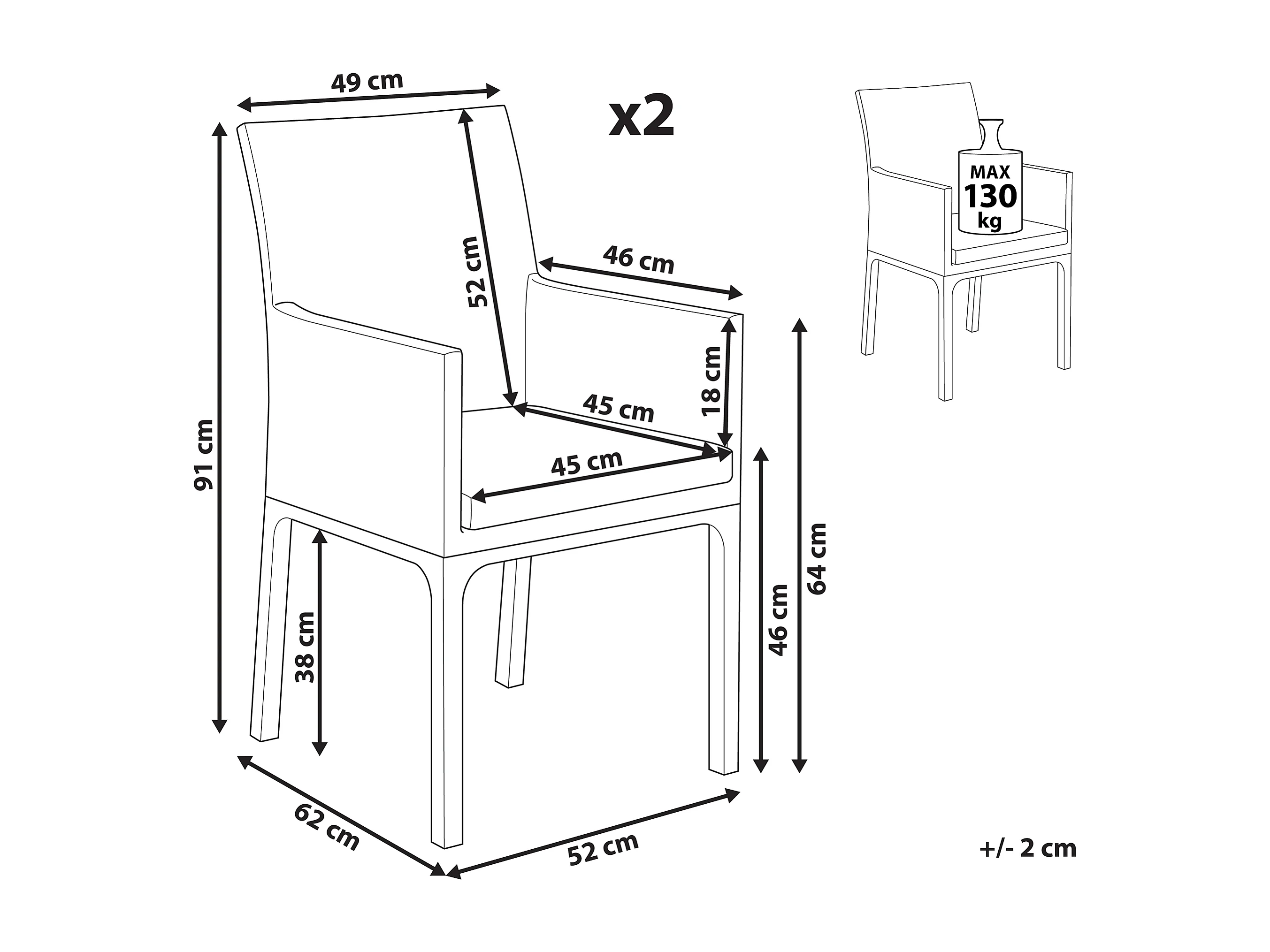 Set di 2 sedie da giardino con cuscini BACOLI Tessuto Grigio scuro