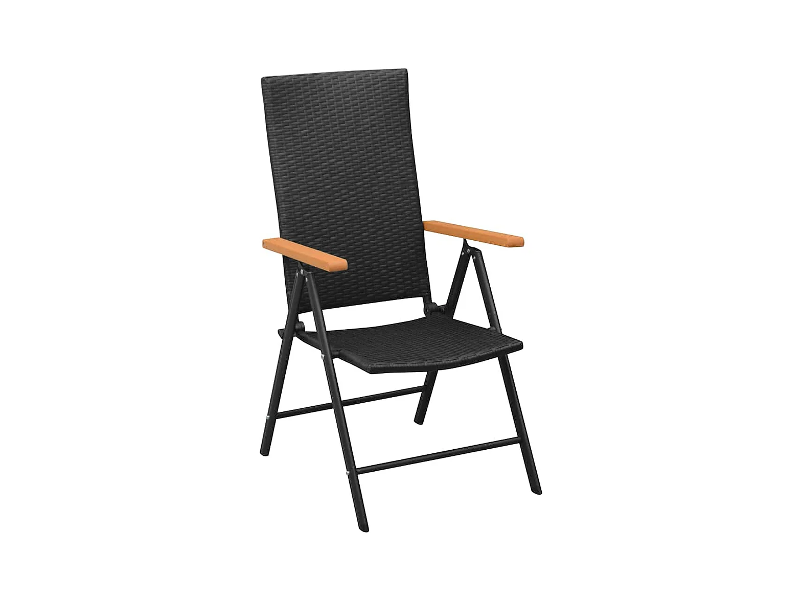 Set di 2 sedie da giardino in resina intrecciata nera e legno massello