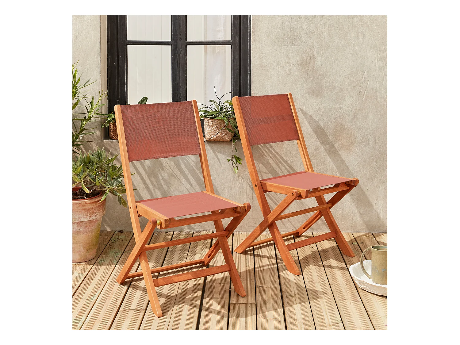 Set di 2 sedie da giardino pieghevoli in legno, terracotta
