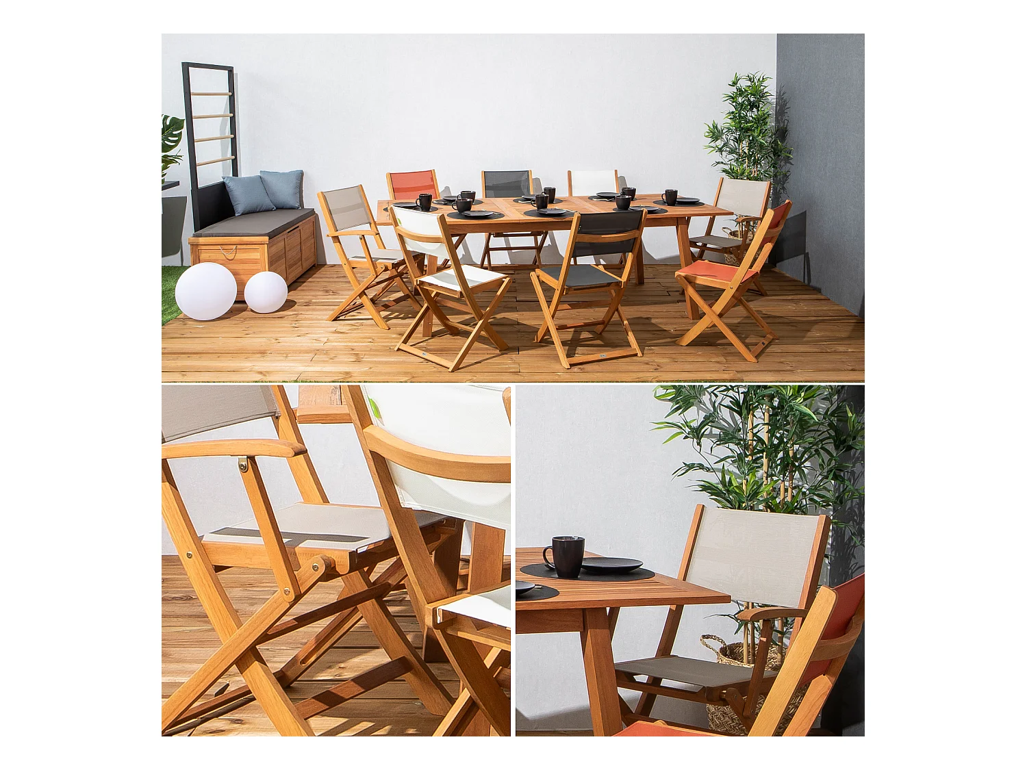 Set di 2 sedie da giardino pieghevoli in legno di eucalipto,