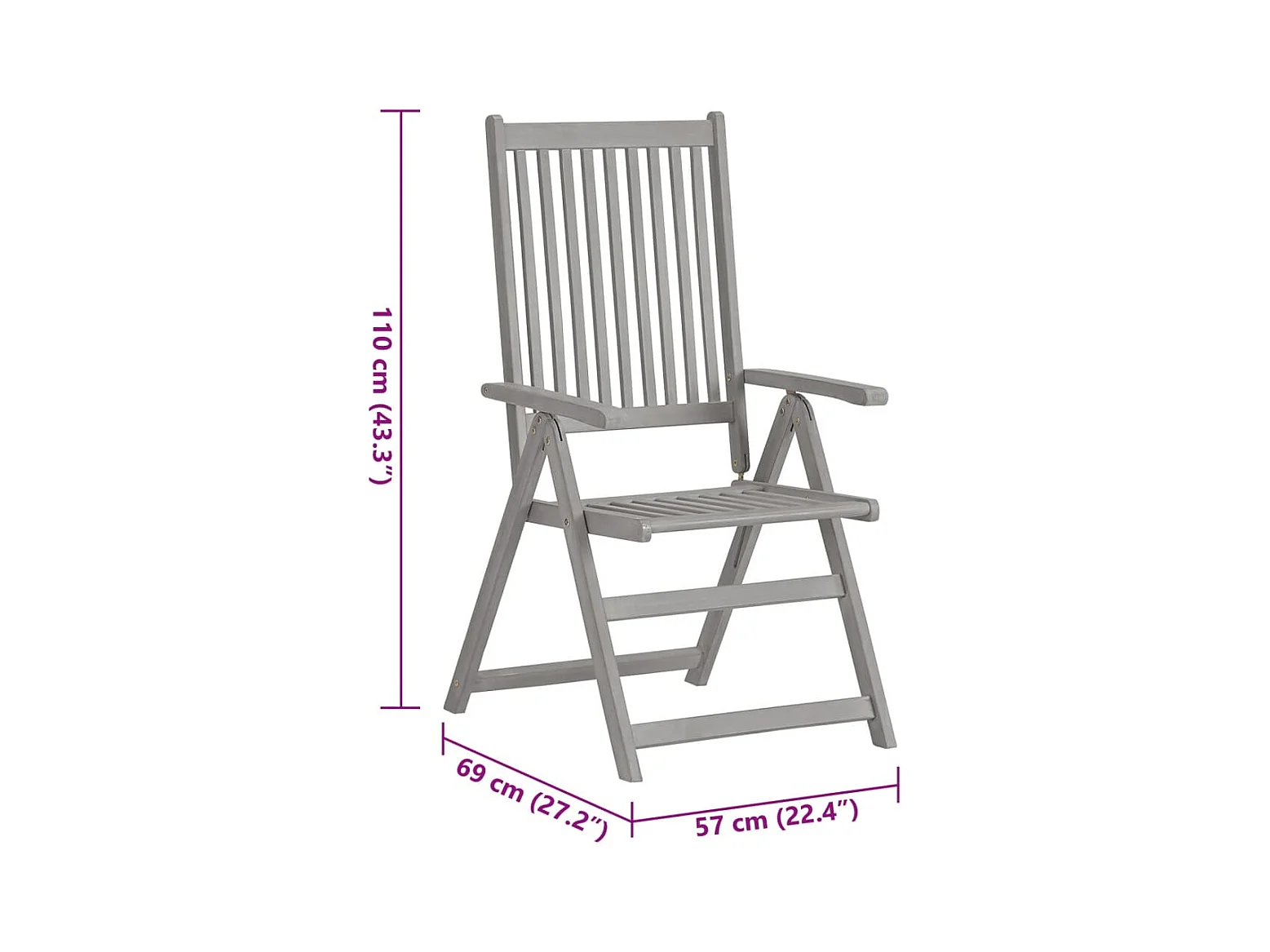 Set di 2 sedie reclinabili con cuscini in teak massello grigio