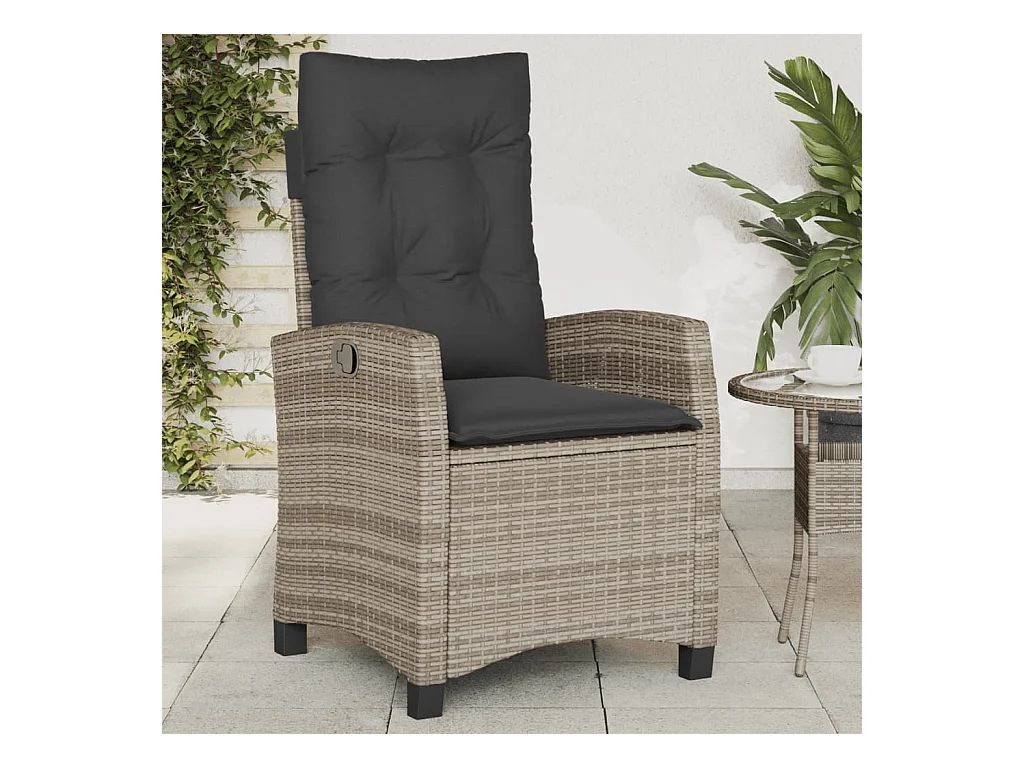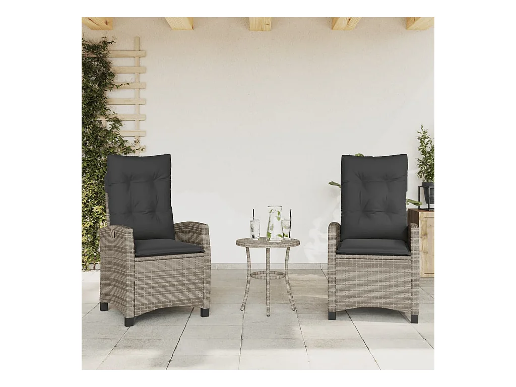 Set di 2 sedie da giardino reclinabili con cuscini in rattan grigio