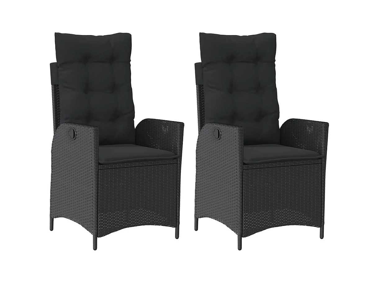 Set di 2 sedie da giardino reclinabili con cuscini in rattan nero