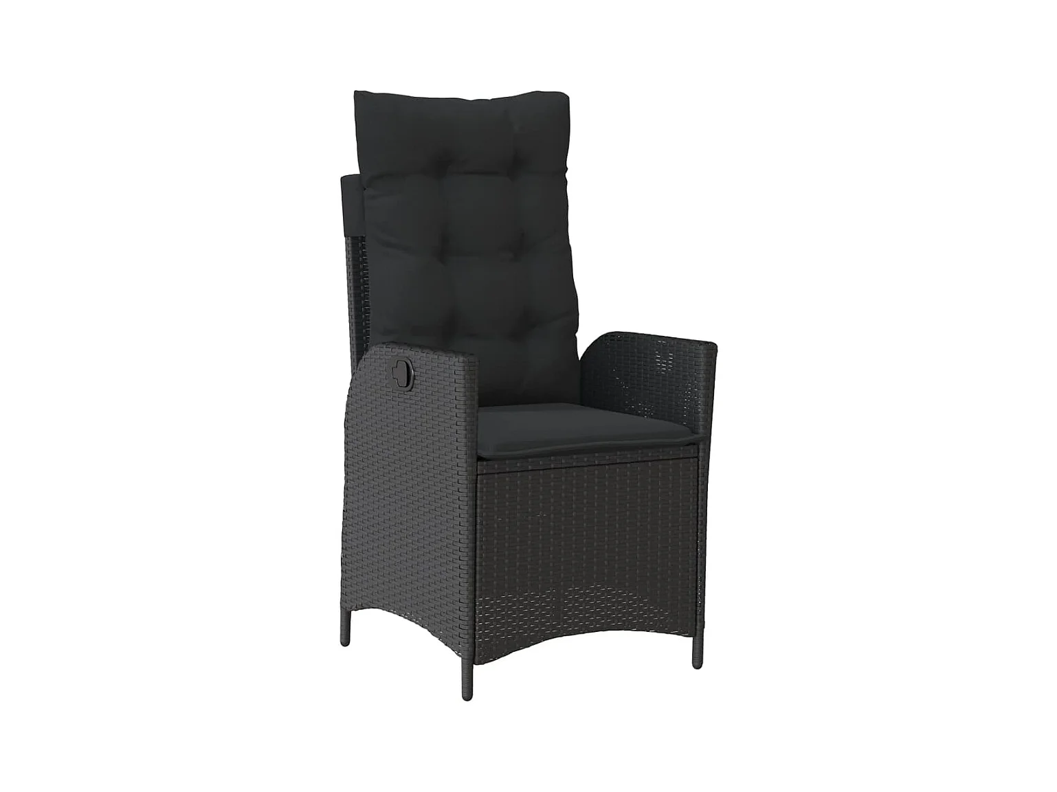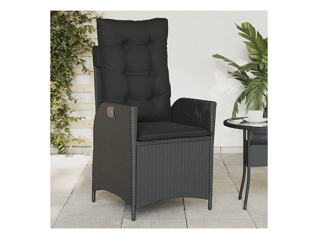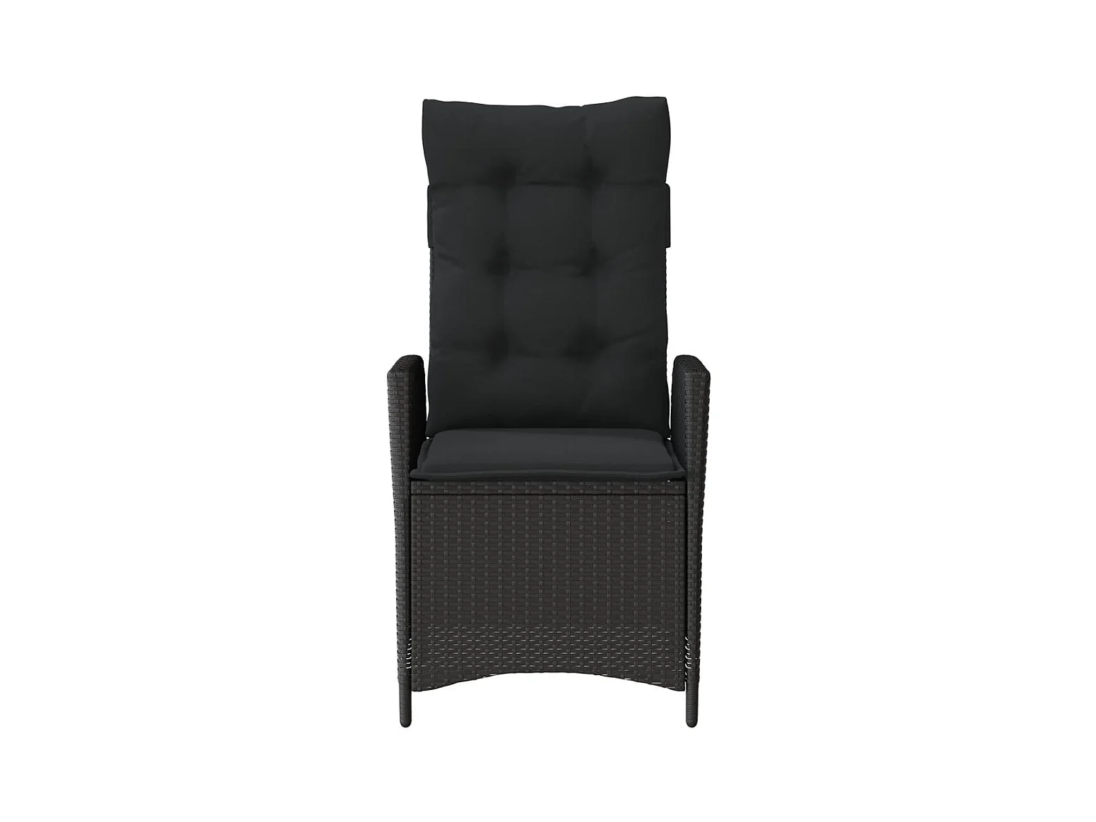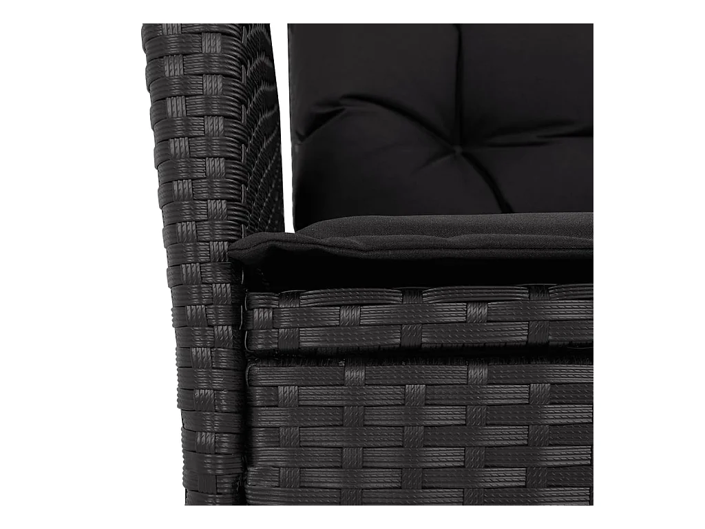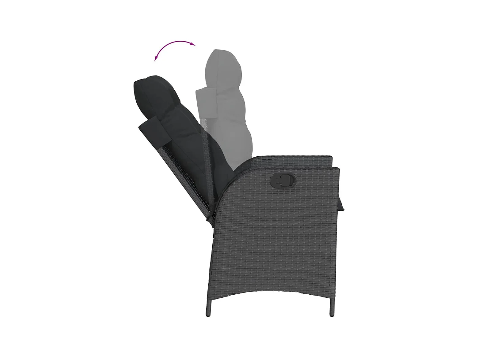 Sedia da giardino reclinabile con cuscini in vimini di resina nera