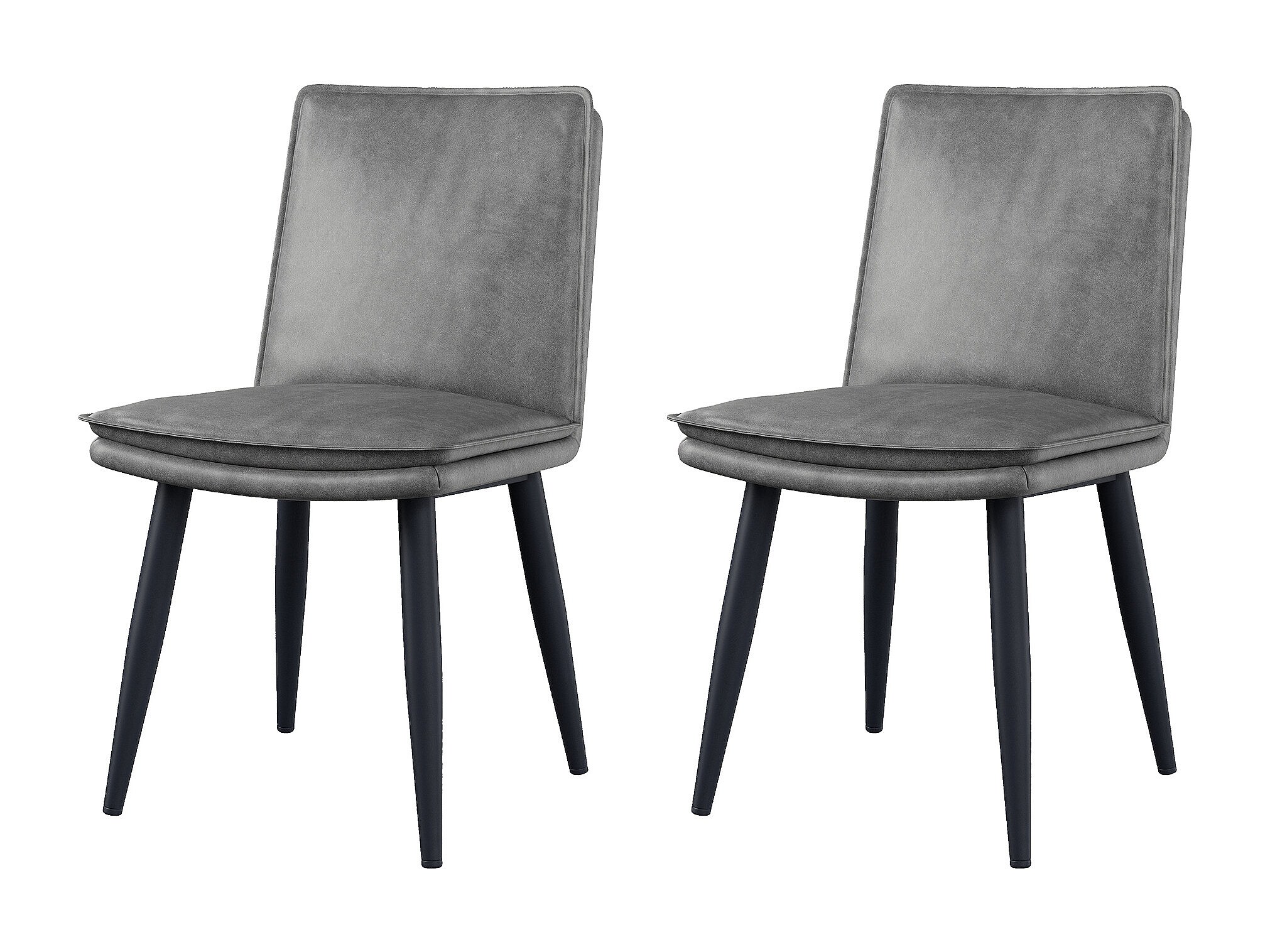 Set di 2 sedie da pranzo - Cuscini doppi - Tessuto in PU - Gambe in metallo - Grigio