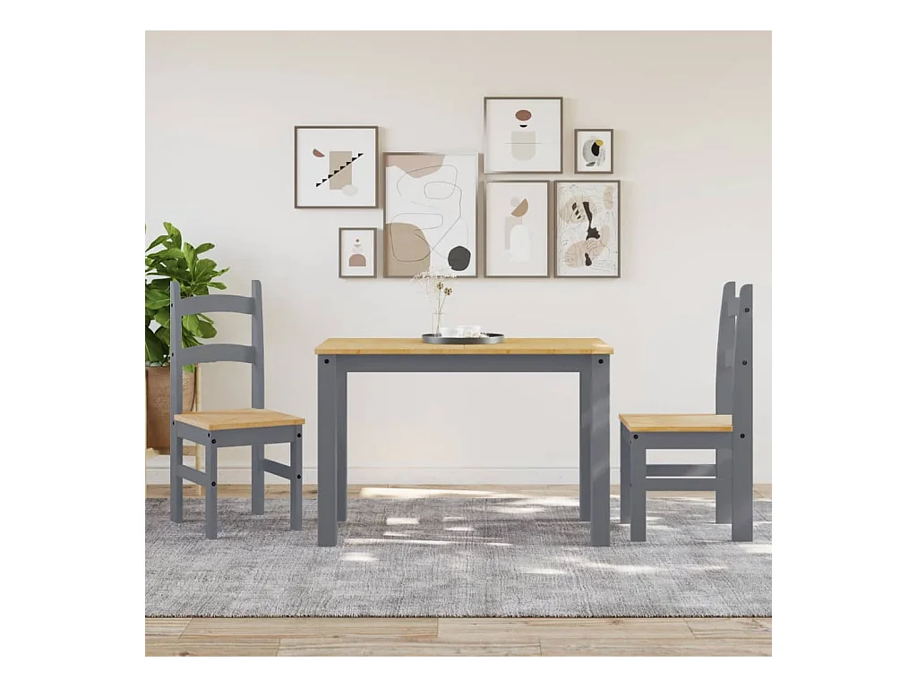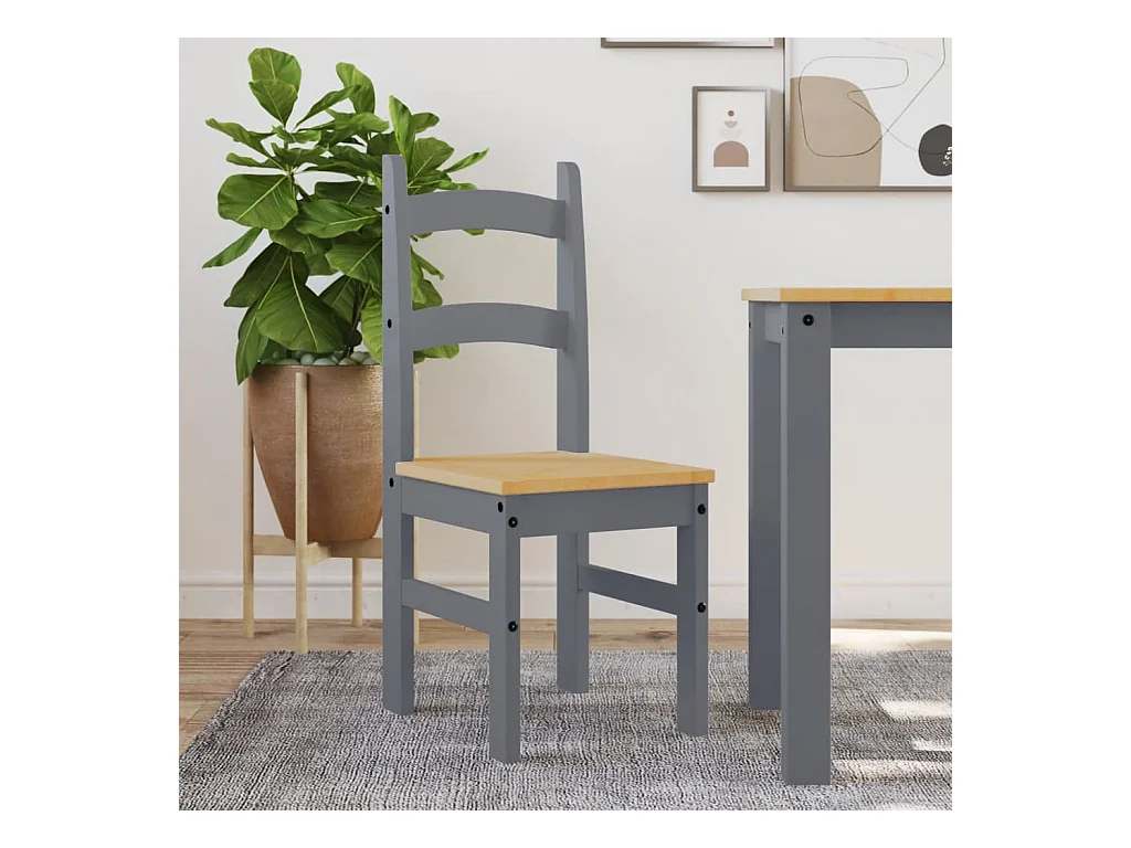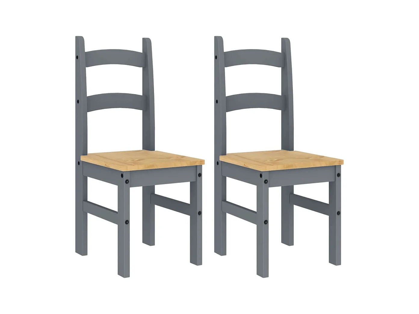 Set di 2 sedie da pranzo Panama in legno massello di pino grigio