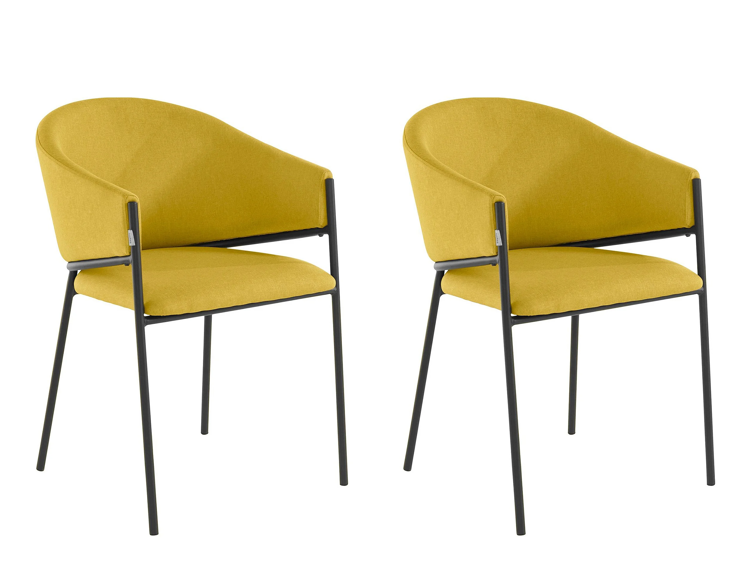 Set di 2 sedie da pranzo imbottite in tessuto giallo