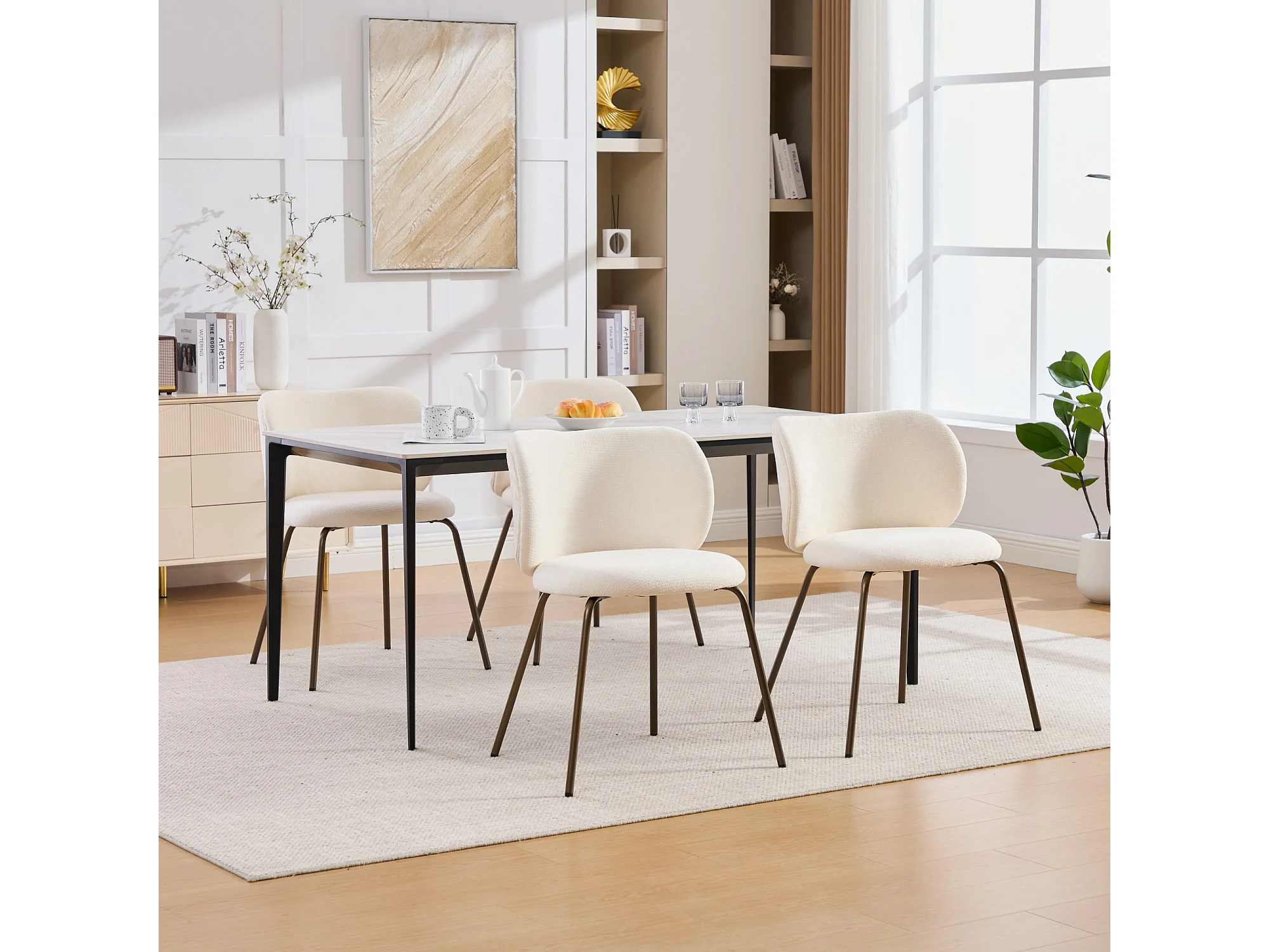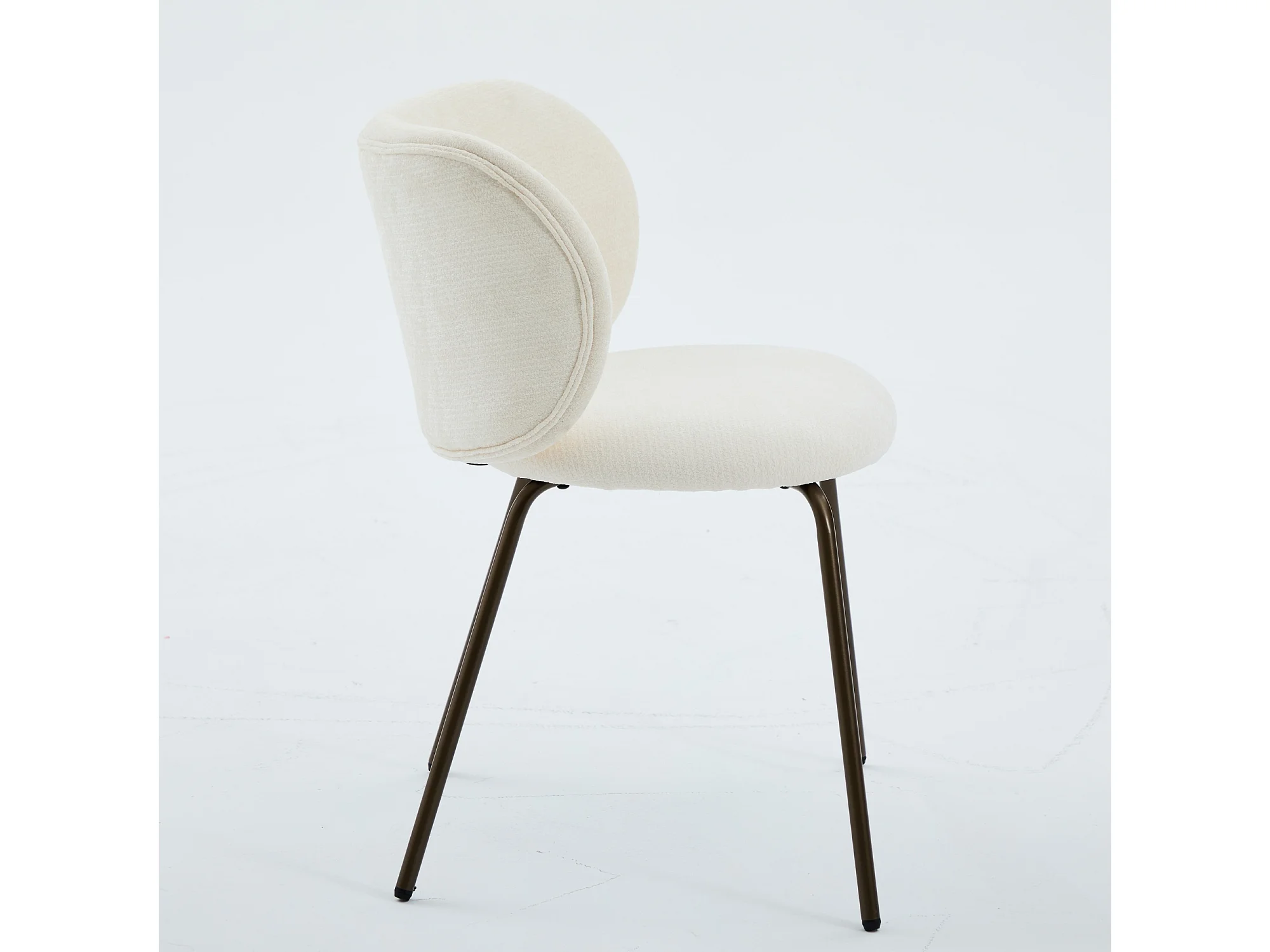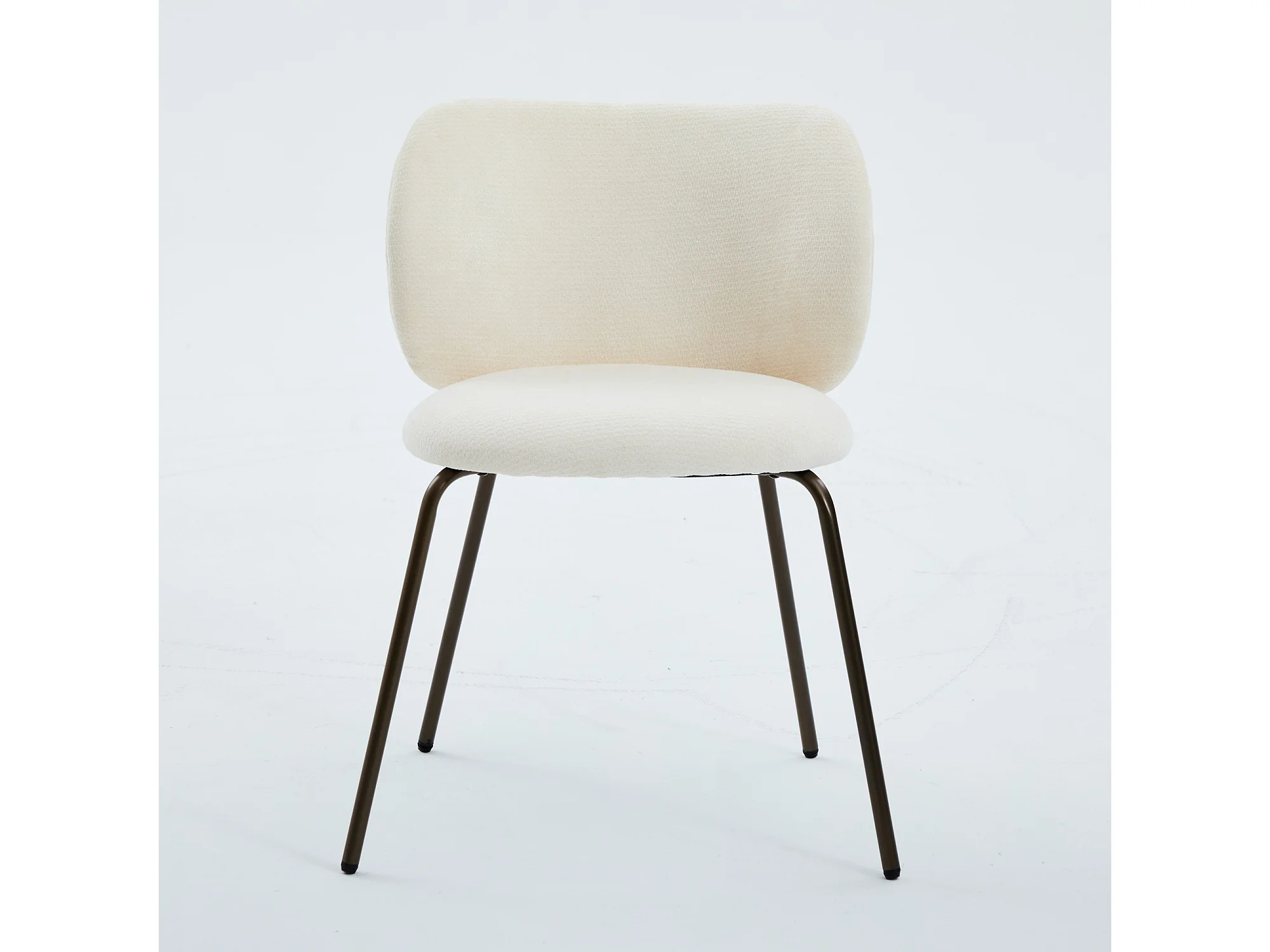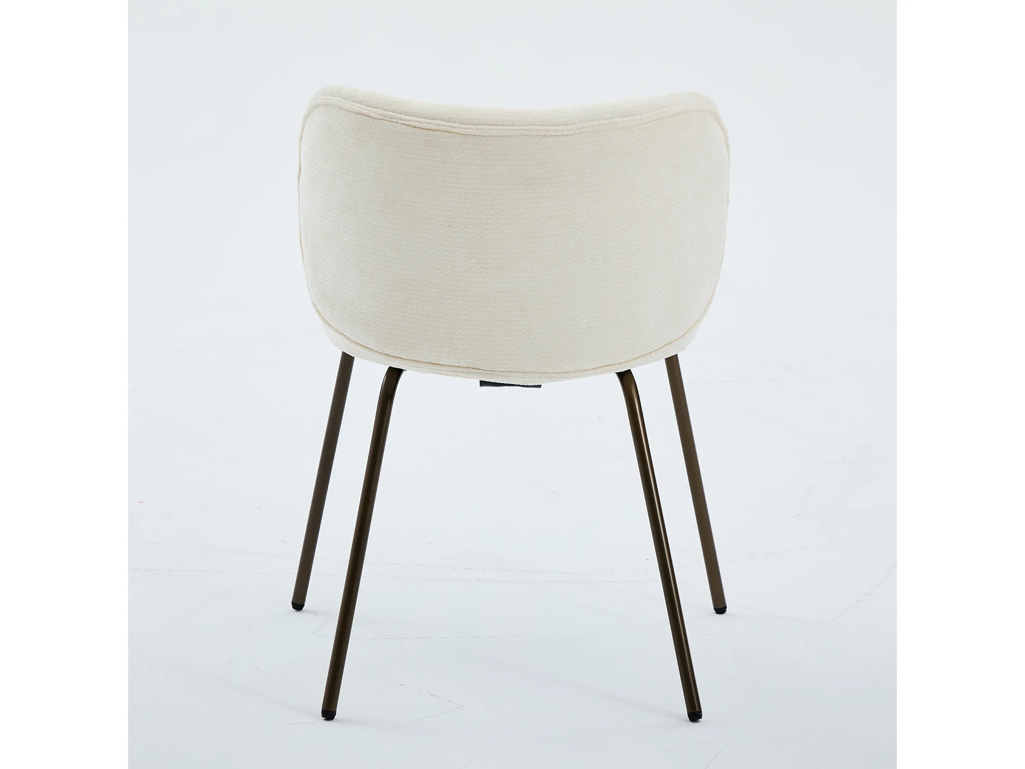 Set di 2 sedie da pranzo in ciniglia color crema con gambe in metallo color bronzo.